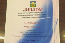 Ученица Хайруллина Зиля стала призером олимпиады по русской литературе! Учитель: Варина Т.Р. Поздравляем!