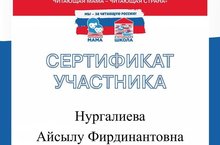 Заместитель директора по воспитательной работе Нургалиева Айсылу Фирдинантовна представила видеоролик с сыном Руфилем на дистанционном конкурсе" Читающая школа-читающая семья-читающая мама " и получила сертификат! Поздравляем!