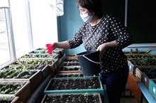 Заведущая пришкольным участком Г.Ф.Шайхенурова ухаживает за рассадой цветов.