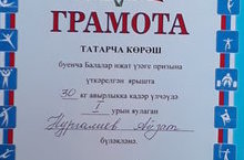 Ученик 7 класса Нургалиев Айзат занял 1 место в соревнованиях по борьбе "Татарча көрәш",организованном на приз ЦДТ в Актаныше.