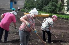Работа в пришкольном участке 27.06.2017 Сотрудники школы-интерната работают на пришкольном участке