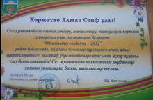 Район мәдәният сараенда Укытучылар көне уңаеннан үткәрелгән тантанада мәктәбебез директоры Хаҗиев Алмаз Сәяф улы Актаныш муниципаль районы хакимияте башлыгының Мактау кәгазе белән бүләкләнде.