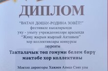 «Ватан Дәшә! Родина Зовет!” фестивале кысаларында авыл җирлекләренең, район үзәге оешмаларының, уку - укыту учрежденияләренең хор коллективлары арасында “Җиңү җырын җырлый Актаныш” бәйгесендә безнең мәктәбебез укучылары һәм укытучылары үзләренең чыгышларын жюрига тәкъдим итеп, лауреат булдылар.Котлыйбыз!