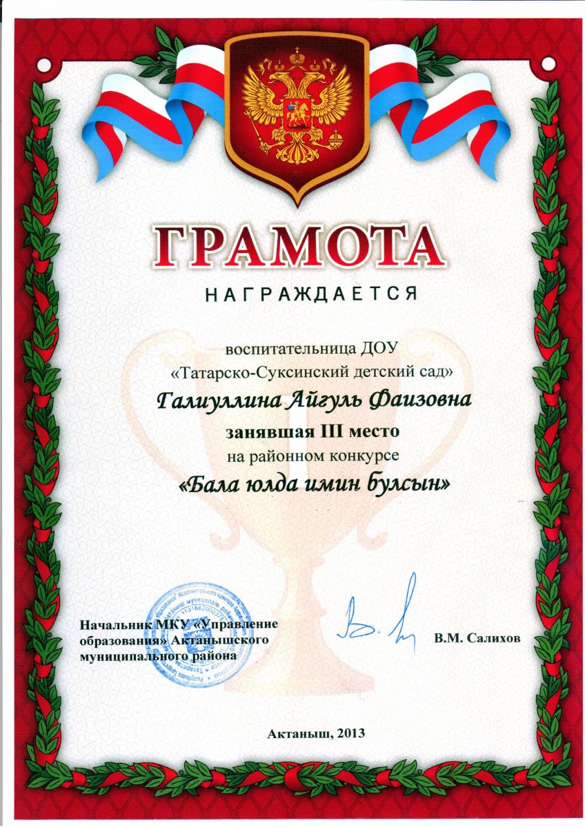 | Короткое название: | Cтруктурное подразделение МБОУ «Татарско-Суксинская СОШ» ДОУ «Татарско-Суксинский детский сад» Актанышского муниципального района РТ |