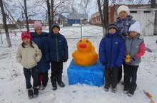 Мәктәп каршысындагы чыршы агачы янына кардан сыннар ясый башладык.