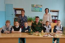 Ватанны саклаучылар елы буларак күп чаралар уза мәктәбебездә. Башлангыч сыйныф укучылары 2 ел элек армия сафларыннан кайткан Илфат абыйларын очрашуга чакырдылар. Ул укучыларга армия хезмәте турында сөйләде. Солдатларга бирелә торган коры паек белән таныштырды. Укучылар үзләрен кызыксындырган сорауларын бирделәр. В год защитника Отечества в нашей школе проходит много мероприятий. Ученики начальных классов пригласили на встречу вернувшийся из армии 2 года назад Ильфата Мргалимова. Он рассказал школьникам о службе в армии. Познакомил с сухпаеком, выдаваемый солдатам. Учащиеся задавали интересующие их вопросы.