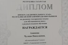 03.03 көнне Казанда үткән Республика татар теле олимпиадасында 8нче класс укучысы Әминова Чулпан призер булды. Чулпанны һәм укытучысы Мәйсәрә Фаисовнаны җиңүләре белән котлыйбыз. Молодцы!