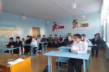 Тарих укытучысы Хәсәнов Рәмис Илгиз улы “Ватанны саклау – изге бурыч” исеме астында парламент дәресе уздырды. Патриотизм төшенчәсенә аңлатма бирде. Укучылар белән җанлы әңгәмә үтте. Учитель истории Хасанов Рамис Ильгизович провел парламентский урок под названием ”Защита Отечества – священный долг". Дал объяснение понятию патриотизма. Состоялась живая беседа с учащимися.