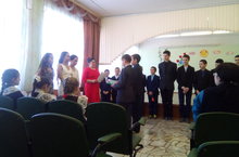 Мәктәптә узган бәйрәмдә егетләребез укытучы апаларны, классташ кызларны тәбрикләделәр.
