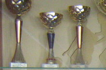 Мәктәпнең конкурсларда яулаган дипломнарыннан һәм кубокларыннан почмак булдырылды.