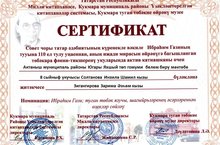 8 нче класс укучысы Солтанова Инзилә Сертификат белән бүләкләнде.