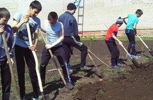 Мәктәп яны бакчасында язгы эшләр башланып китте. Карлыган , чия араларын йомшартабыз. Җиләк төпләрен эшкәртәбез.