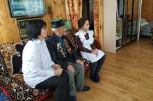 Укучылар Бөек Ватан сугышы ветераны Валеев Тәфкил абыйның хәлен белергә бардылар. Ветеран тагын бер кат сугыш авырлыклары турында сөйләде. Җиңү көнен ничек итеп каршылавы турында уртаклашты/ Учащиеся навестили ветерана Великой Отечественной войны Валеева Т.В.. Ветеран еще раз рассказал о трудностях войны. О том, как он встретил День Победы.