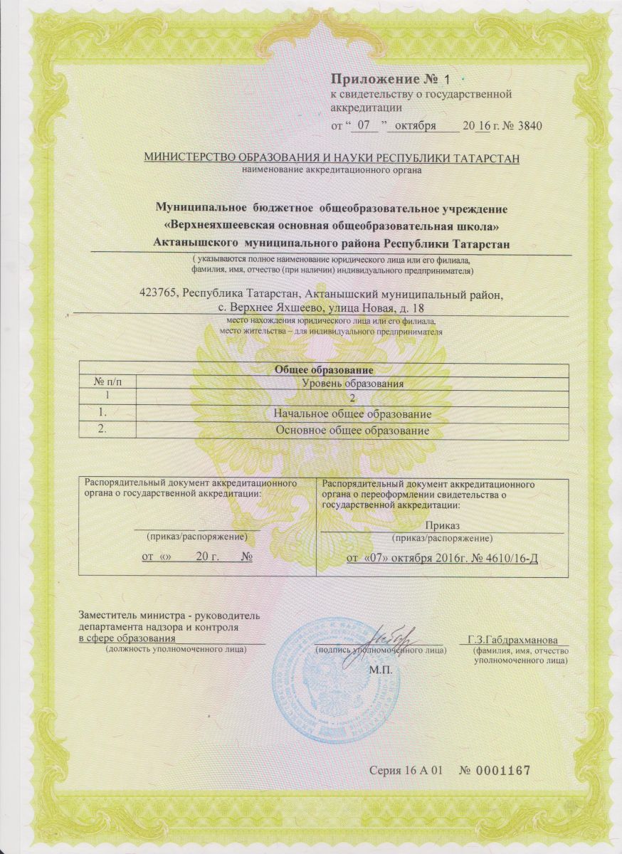 Муниципальное бюджетное общеобразовательное учреждение «Верхнеяхшеевская основная общеобразовательная школа» Актанышского муниципального района Республики Татарстан / Татарстан Республикасы Актаныш муниципаль районы "Югары Яхшый төп белем бирү мәктәбе муниципаль бюджет гомуми белем бирү учреждениесе"
