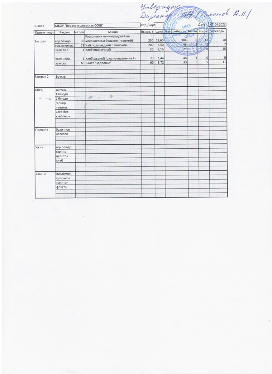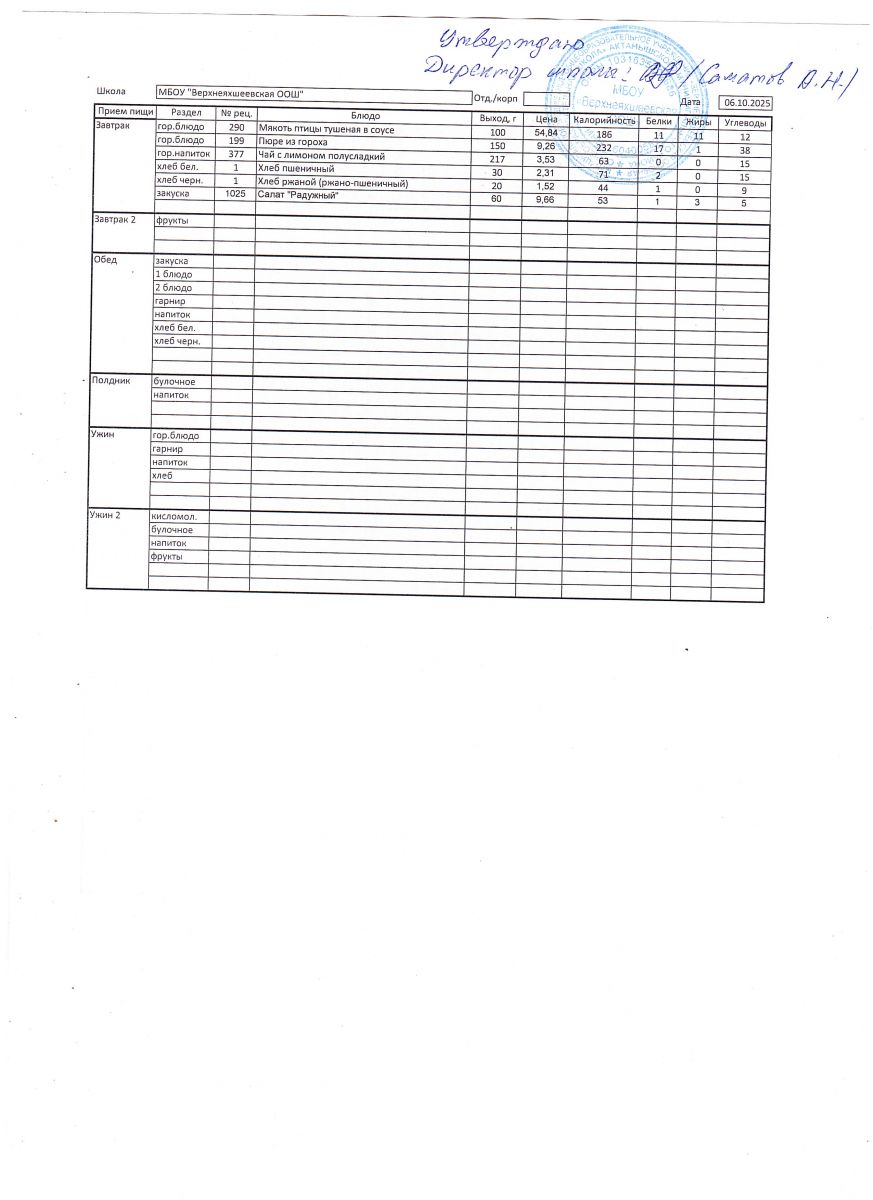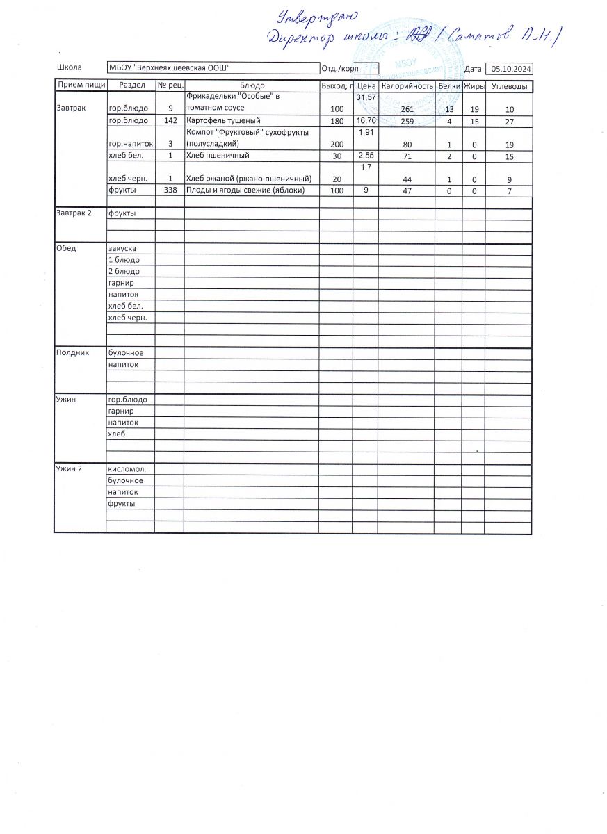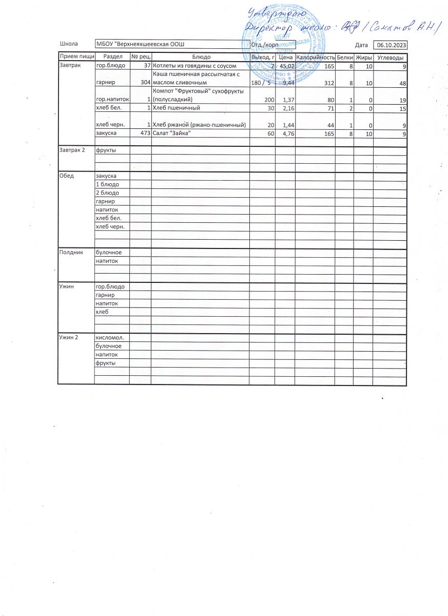 Однодневное меню на 05.10.2023 Однодневное меню на 06.10.2023 Однодневное меню на 07.10.2023