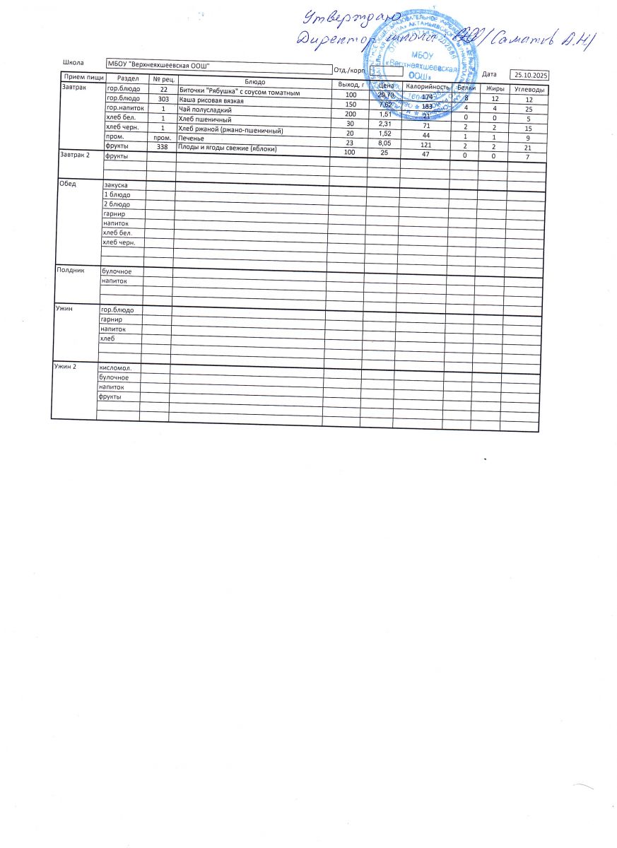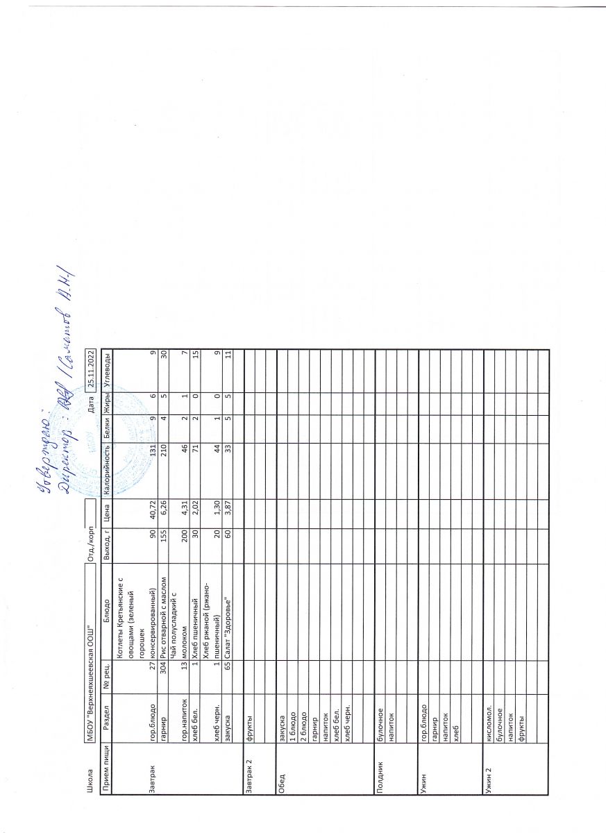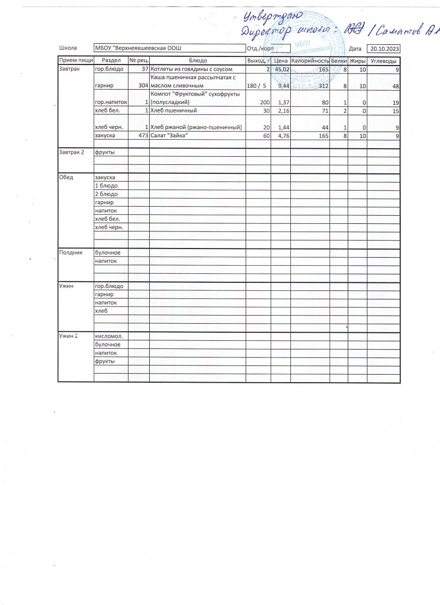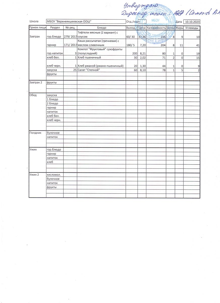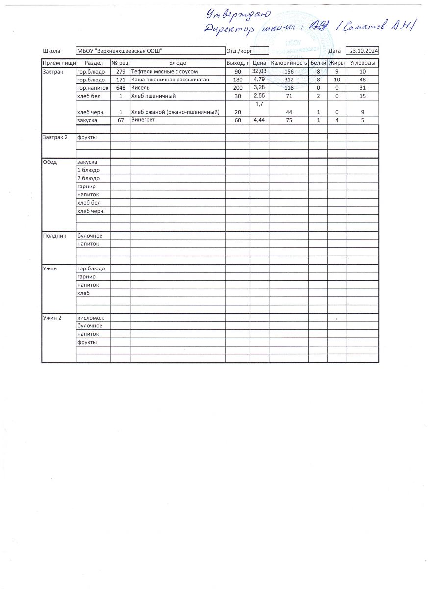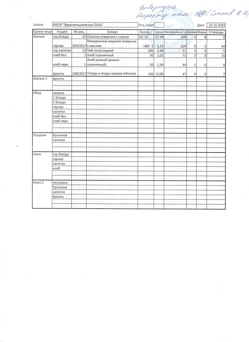 Однодневное меню на 23.10.2023 Однодневное меню на 24.10.2023 Однодневное меню на 25.10.2023