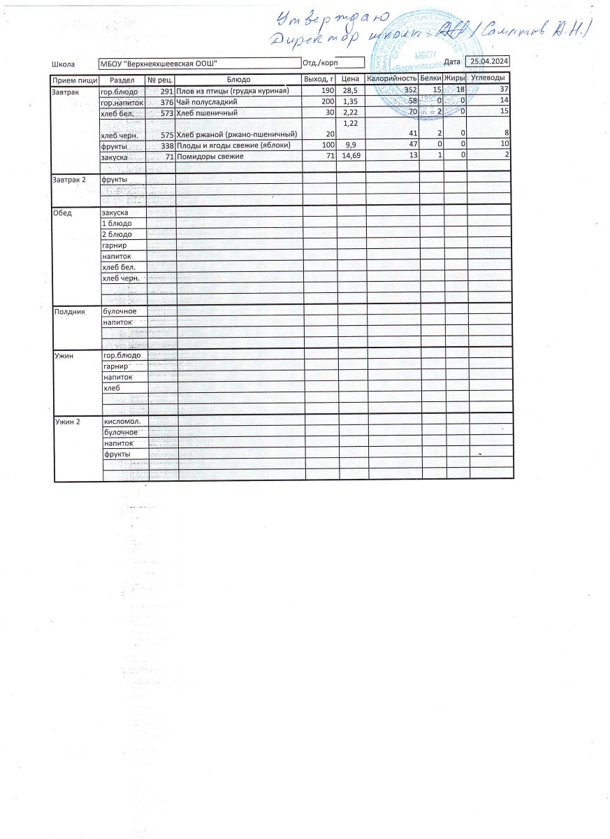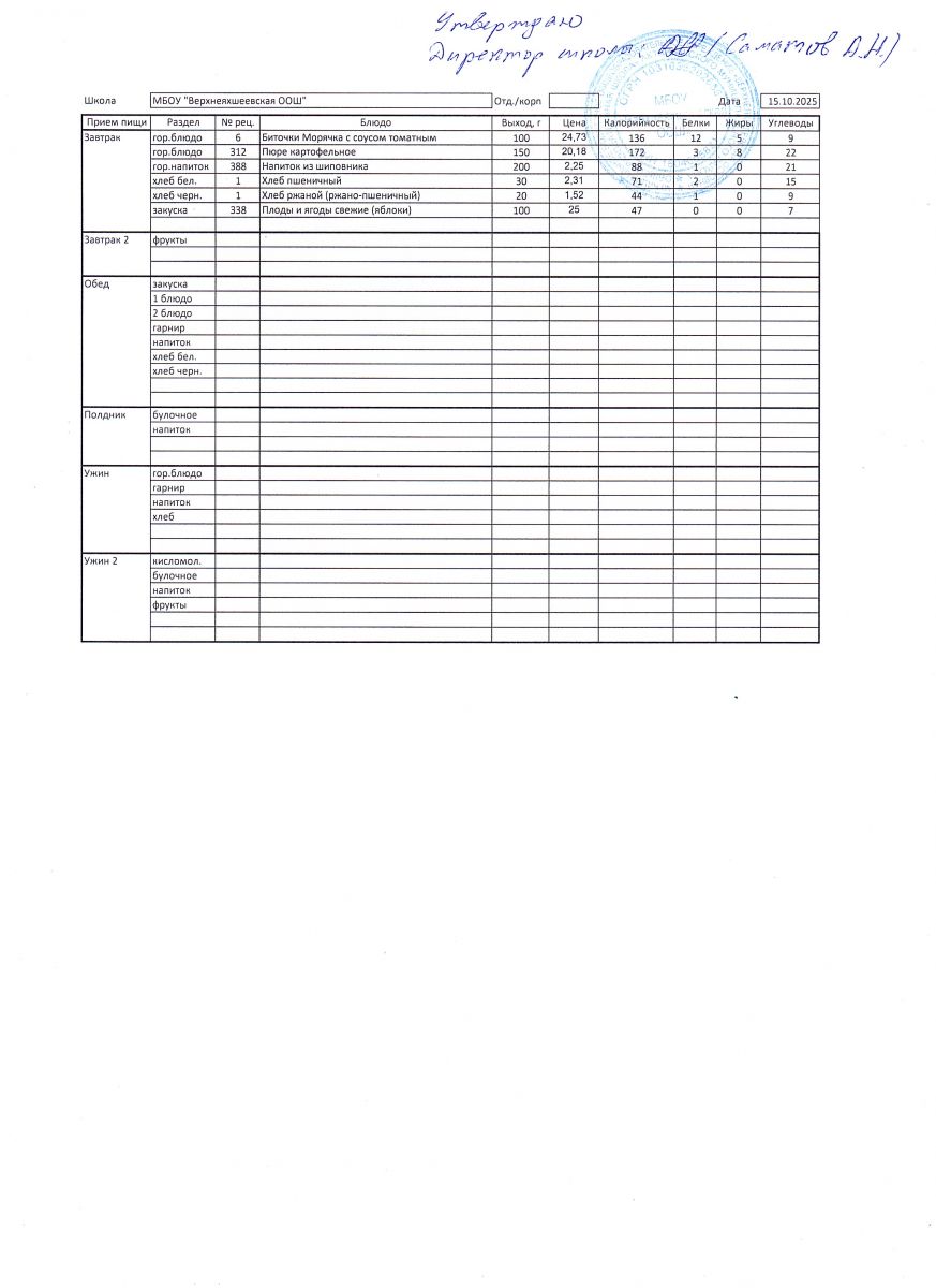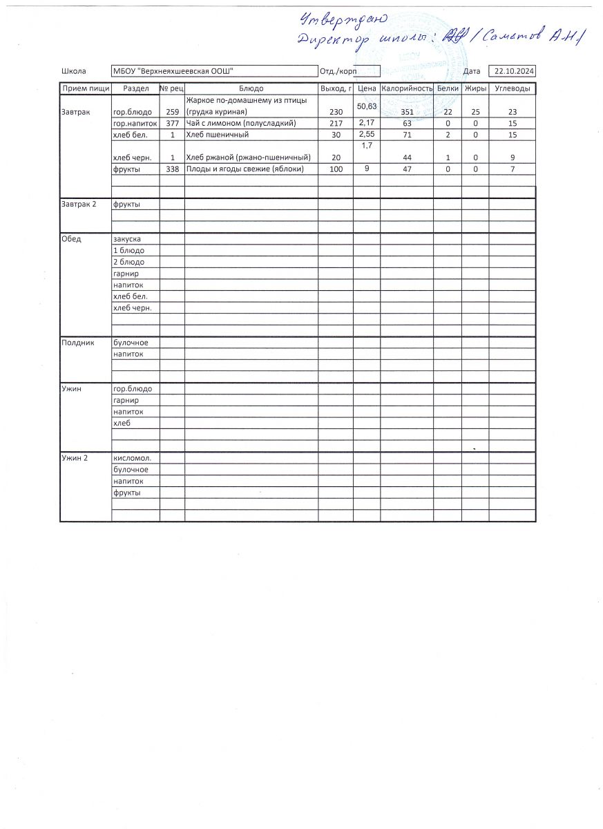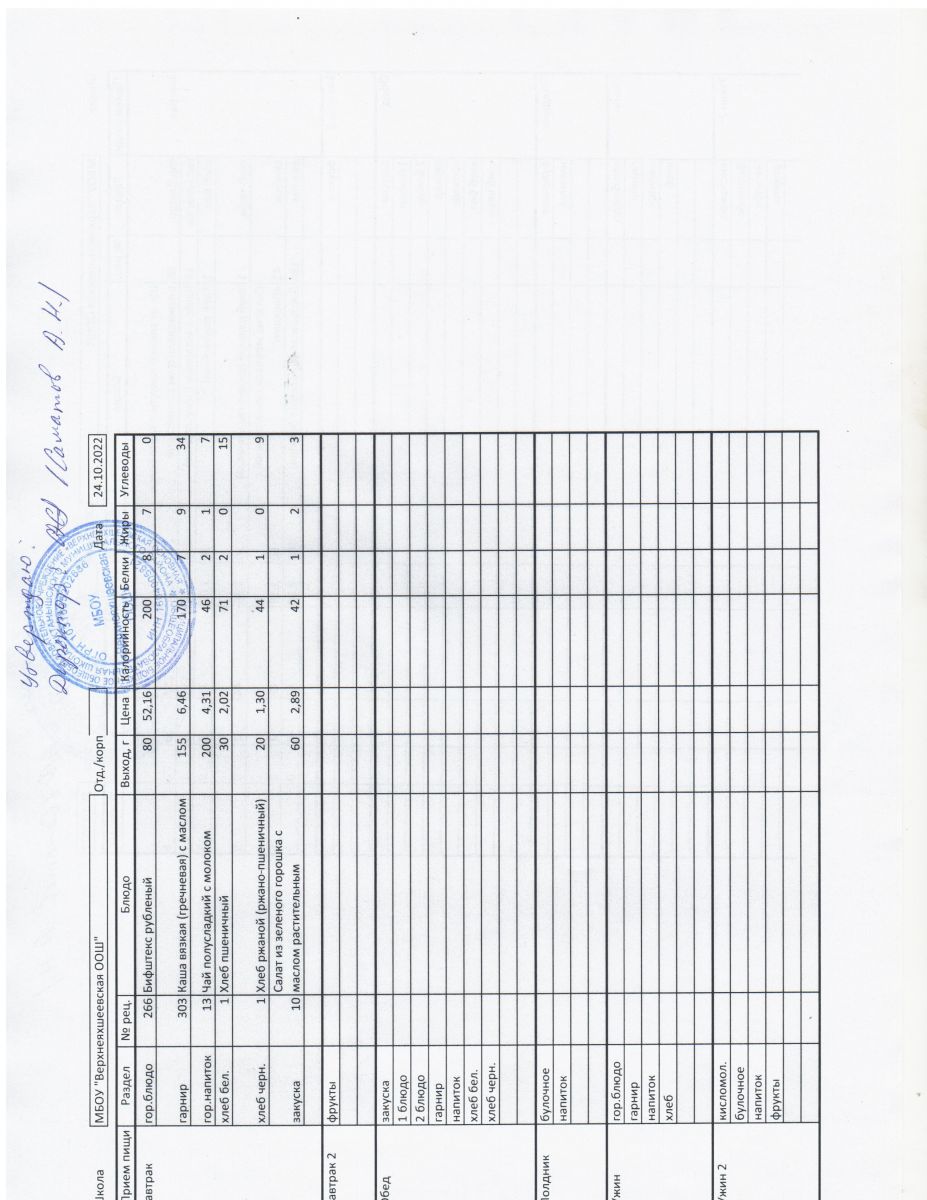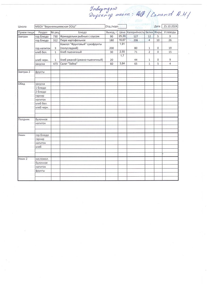Однодневное меню на 23.10.2023 Однодневное меню на 24.10.2023 Однодневное меню на 25.10.2023