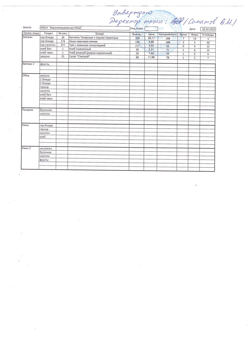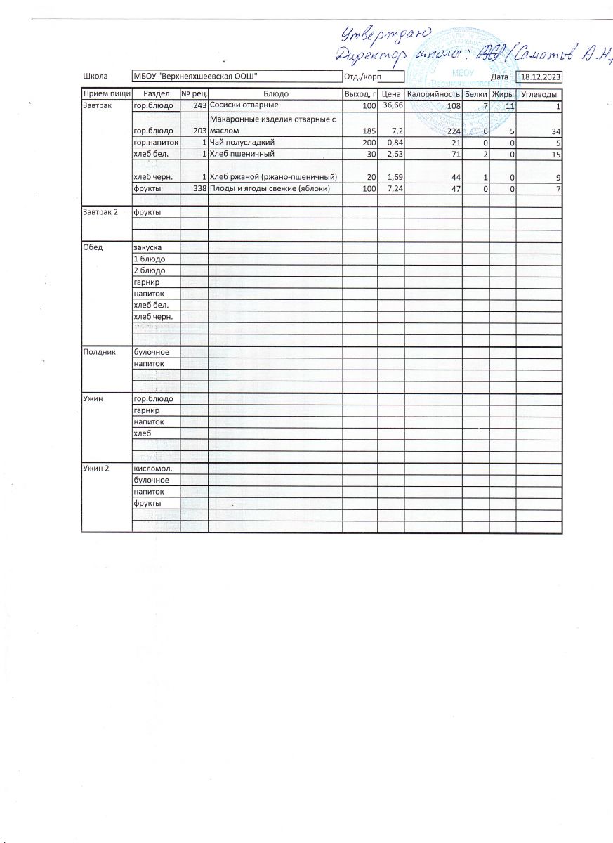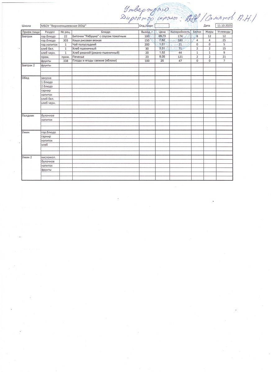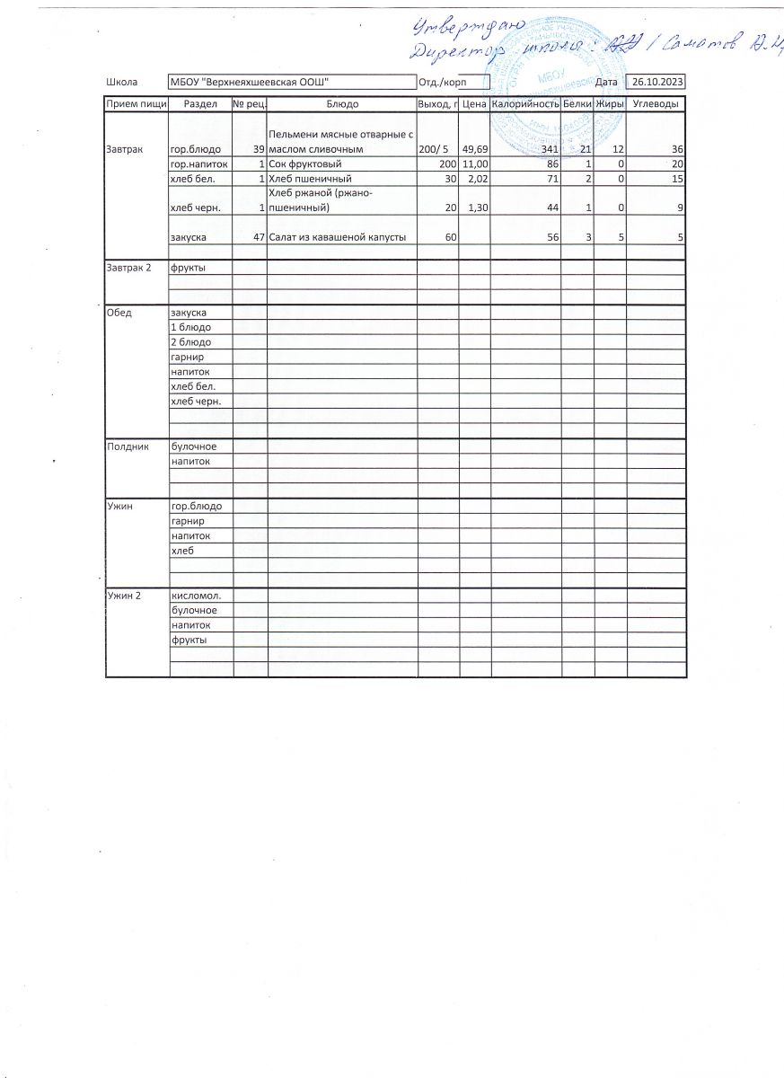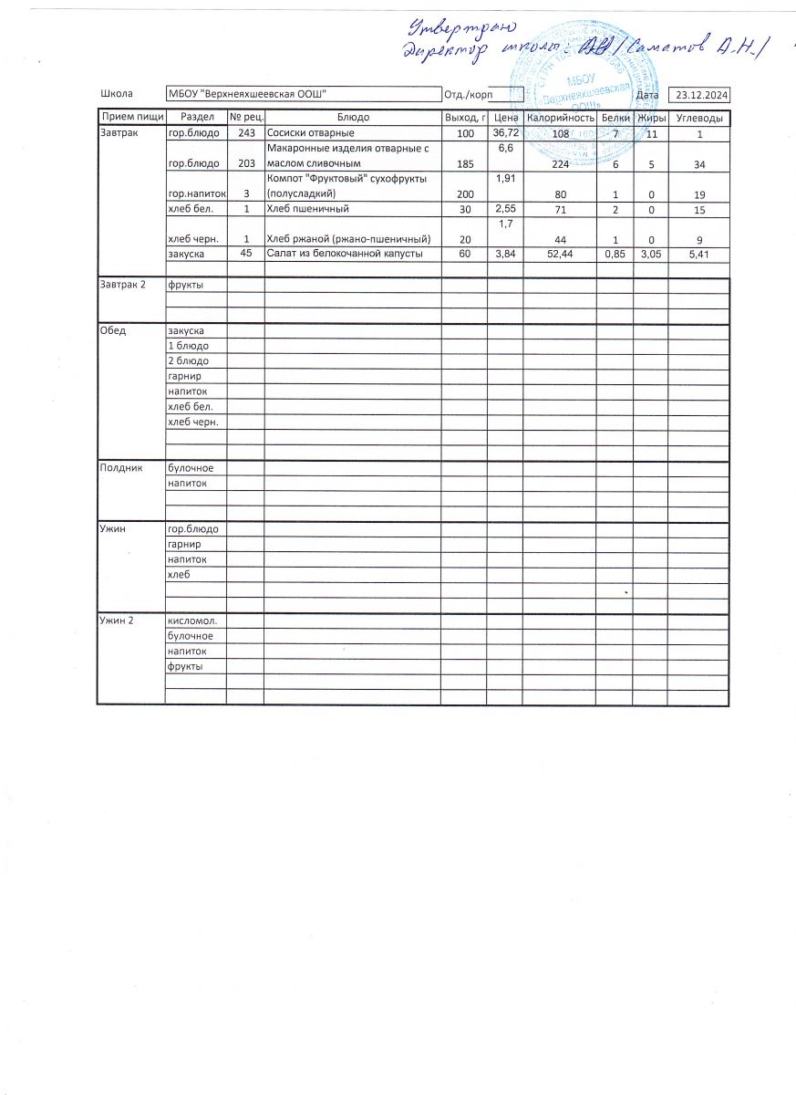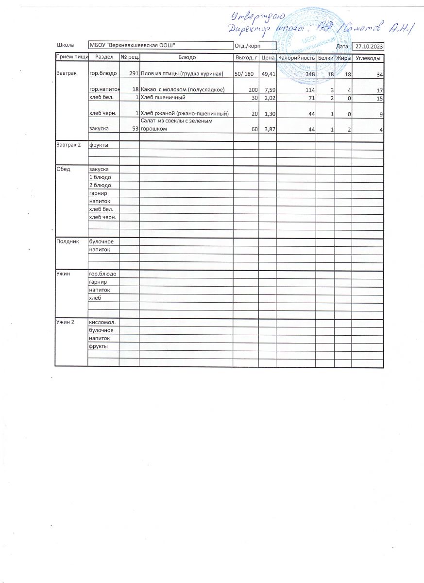 Однодневное меню на 23.10.2023 Однодневное меню на 24.10.2023 Однодневное меню на 25.10.2023