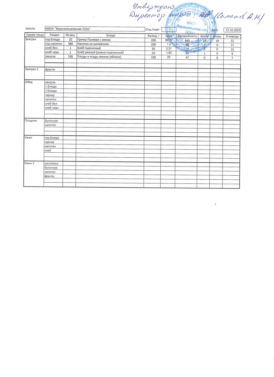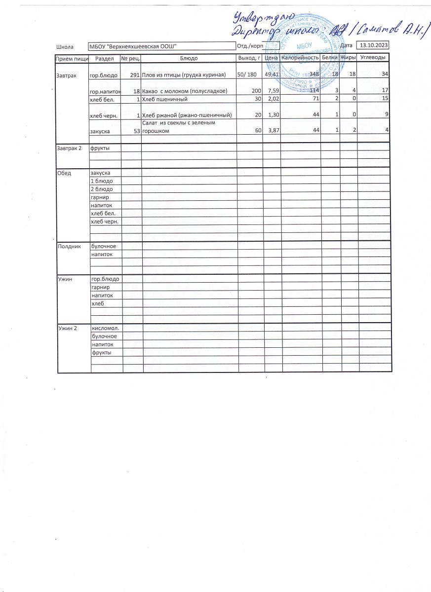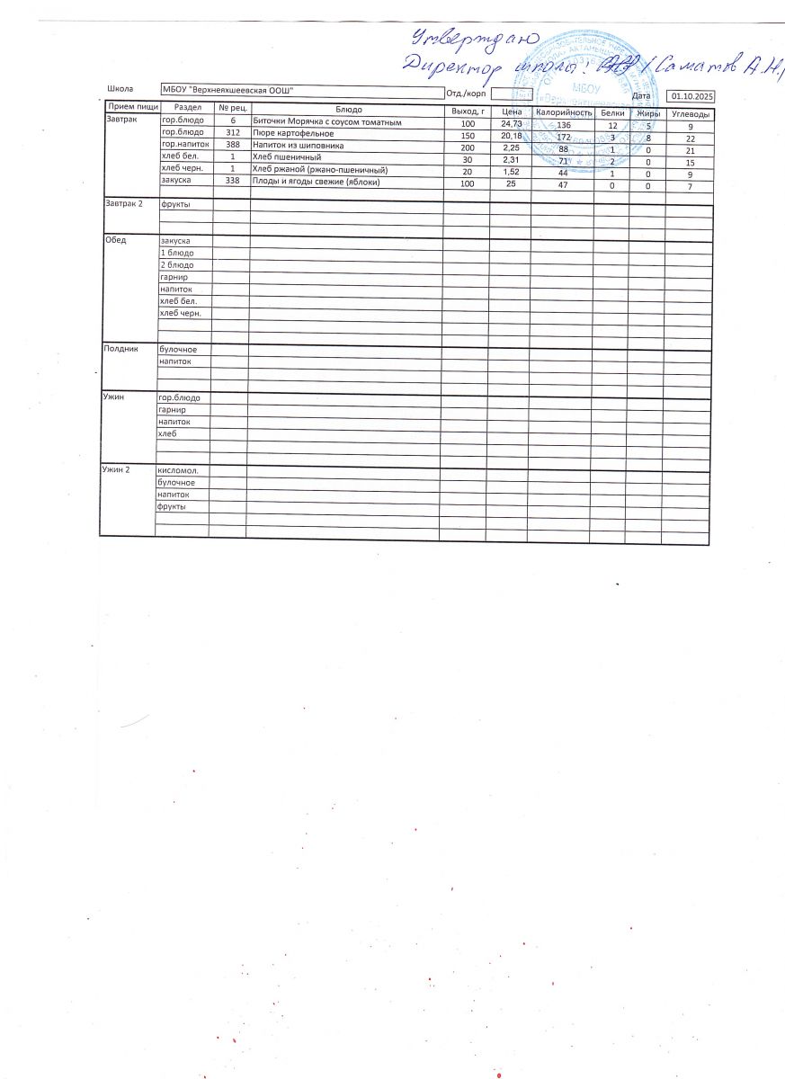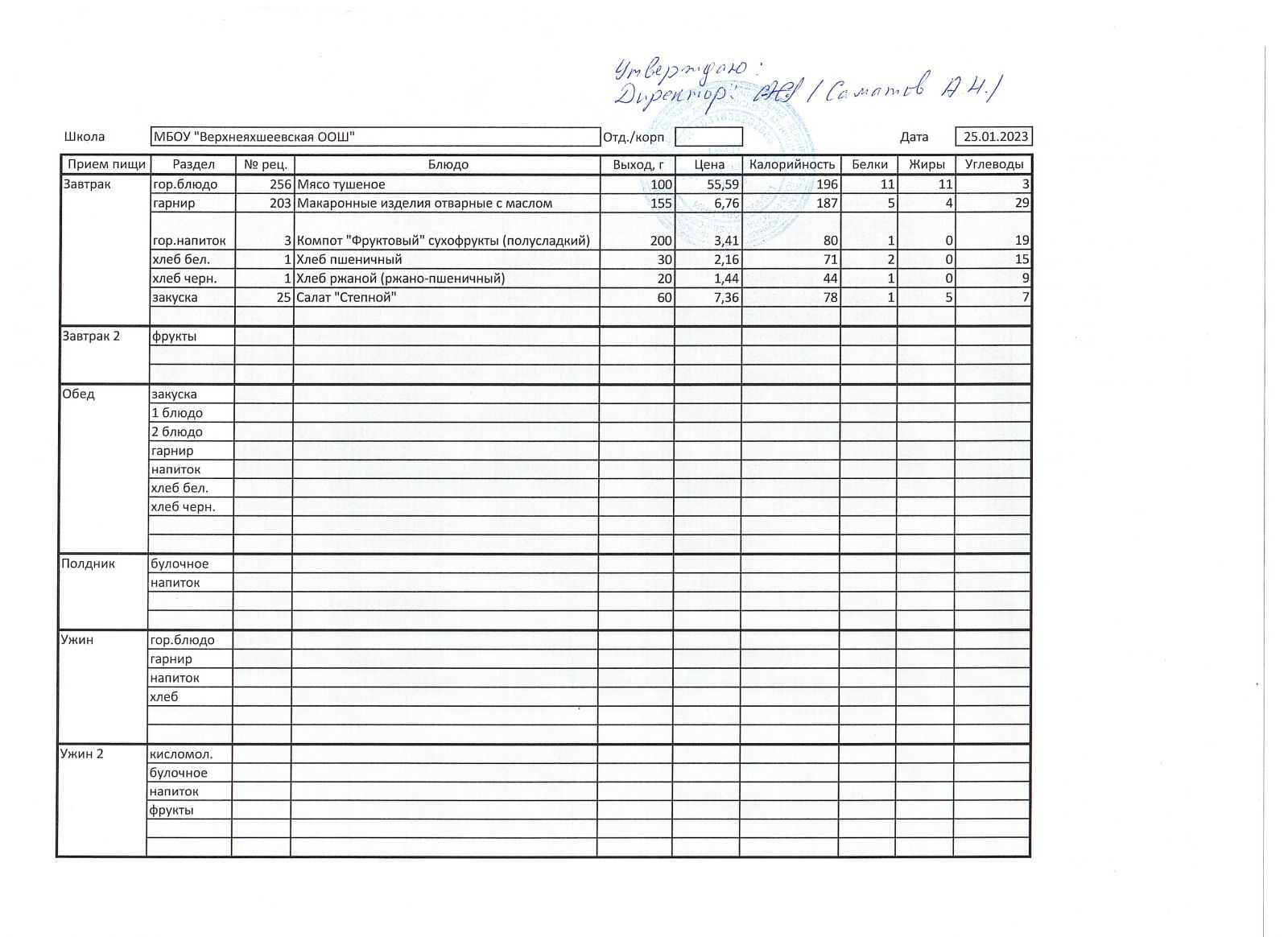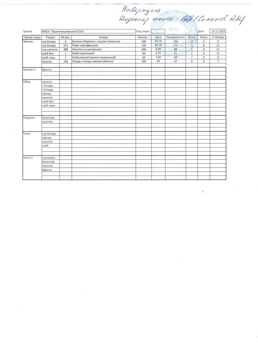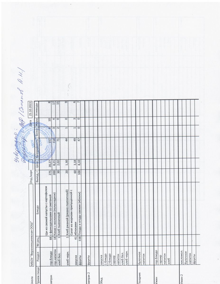 Однодневное меню на 23.10.2023 Однодневное меню на 24.10.2023 Однодневное меню на 25.10.2023