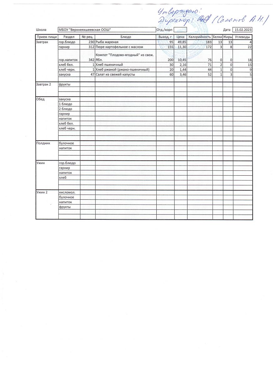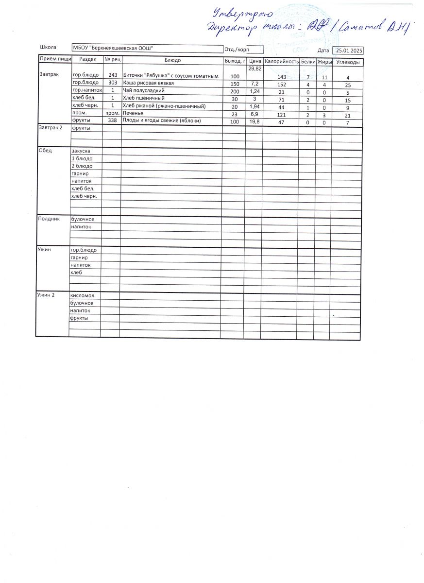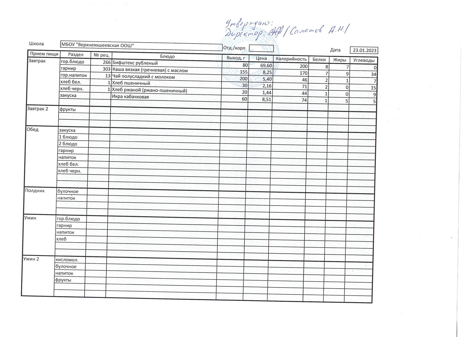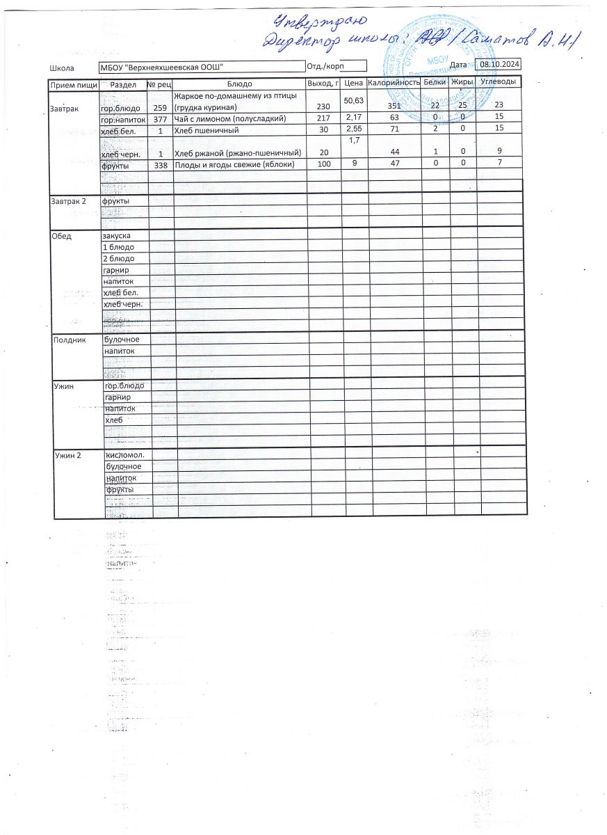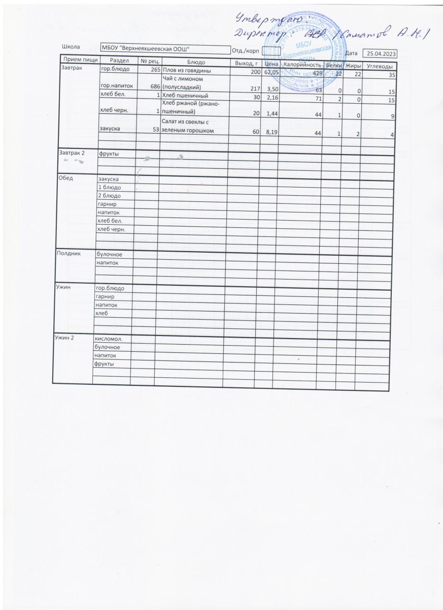 Однодневное меню на 23.10.2023 Однодневное меню на 24.10.2023 Однодневное меню на 25.10.2023