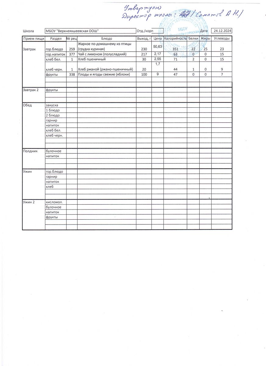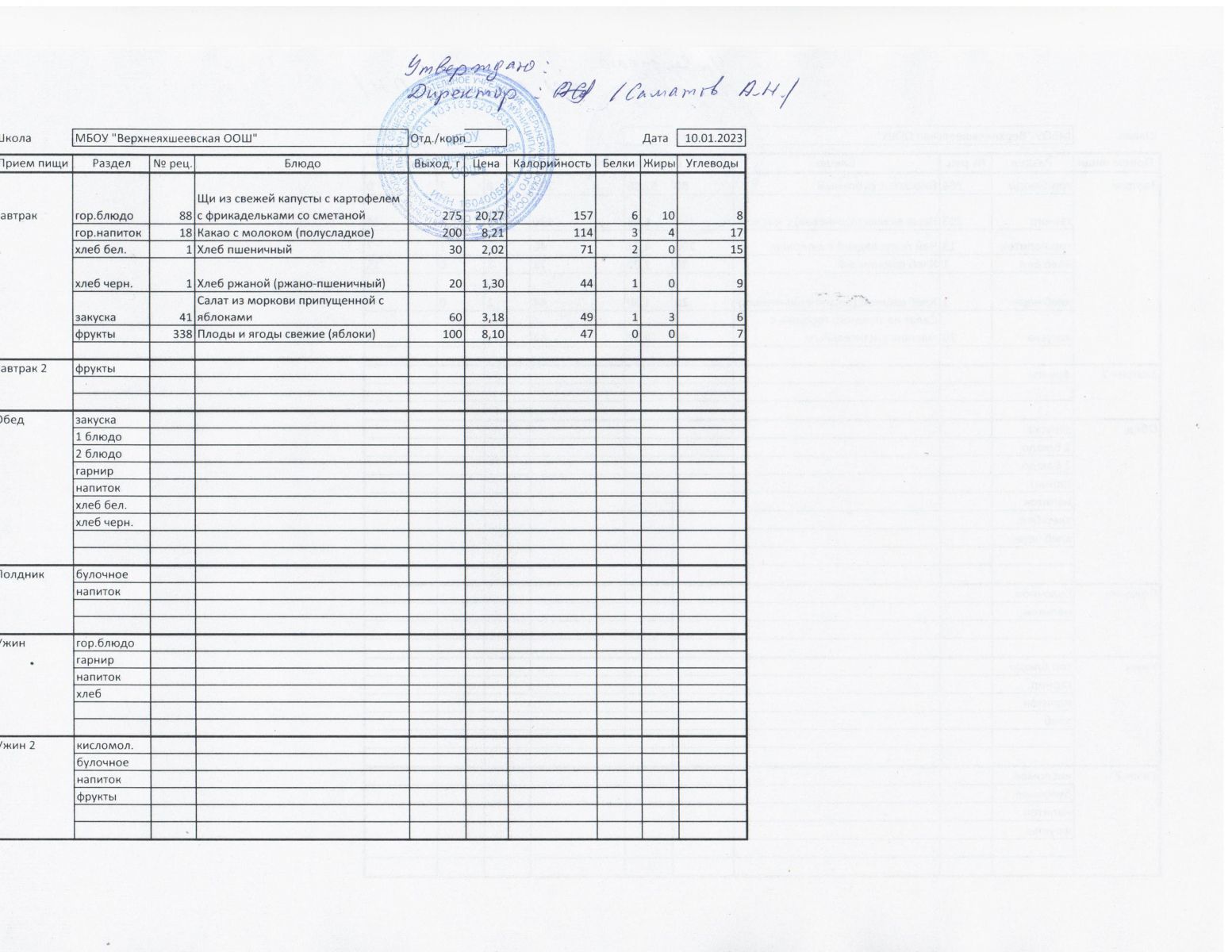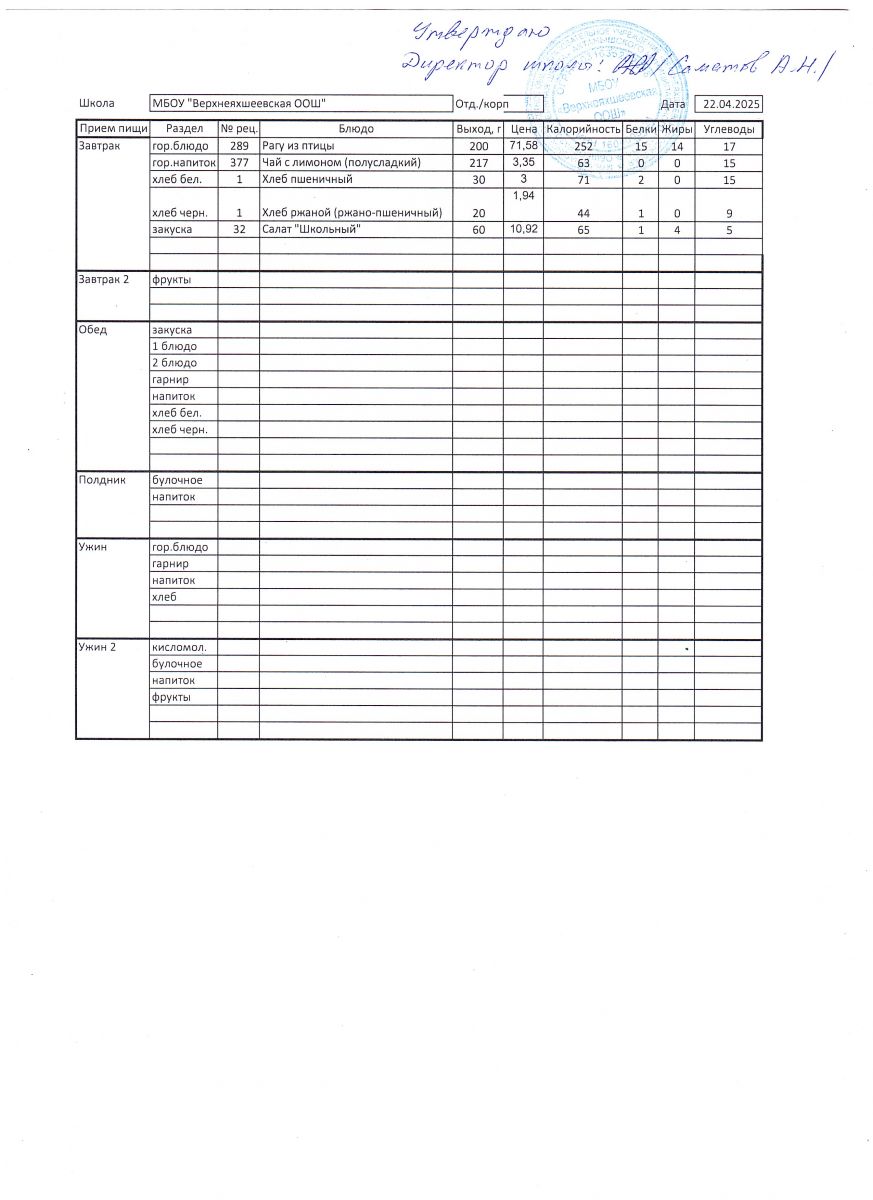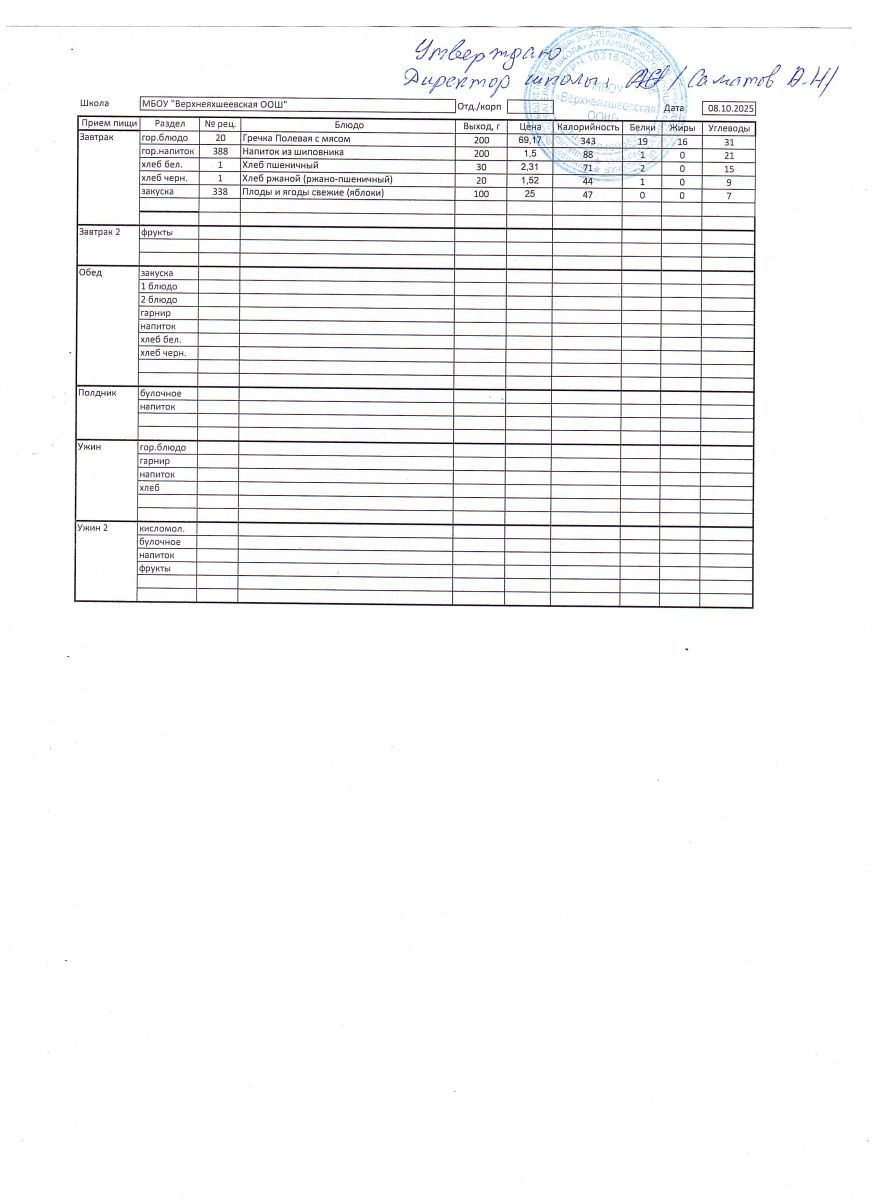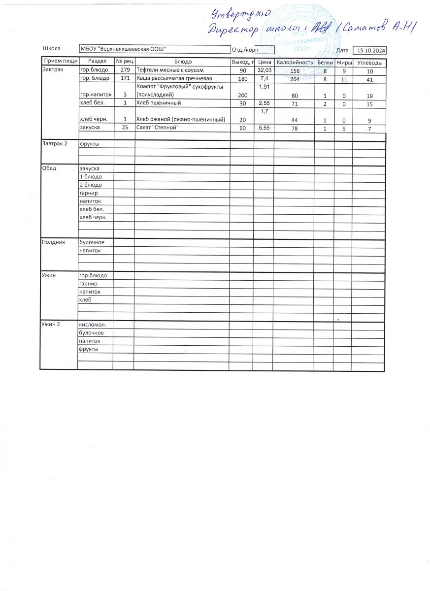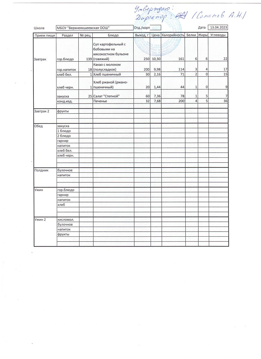 Однодневное меню на 23.10.2023 Однодневное меню на 24.10.2023 Однодневное меню на 25.10.2023