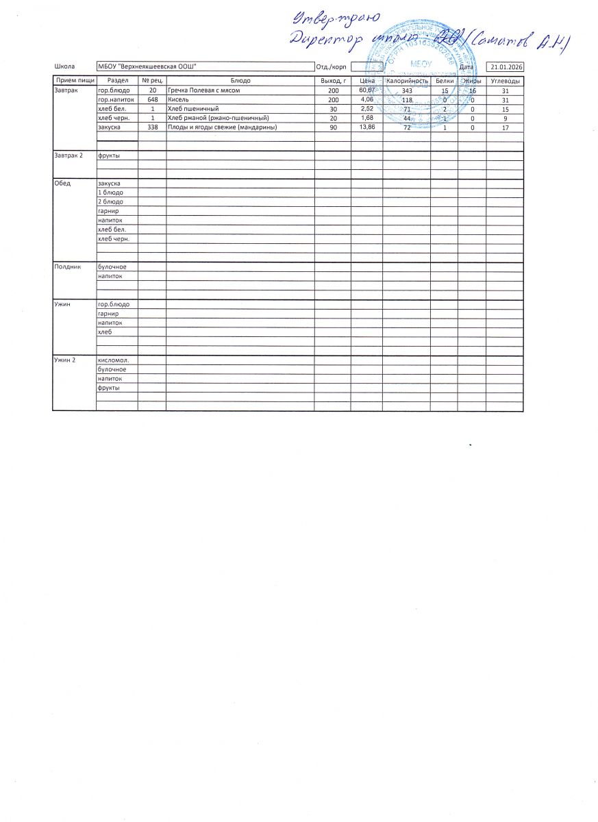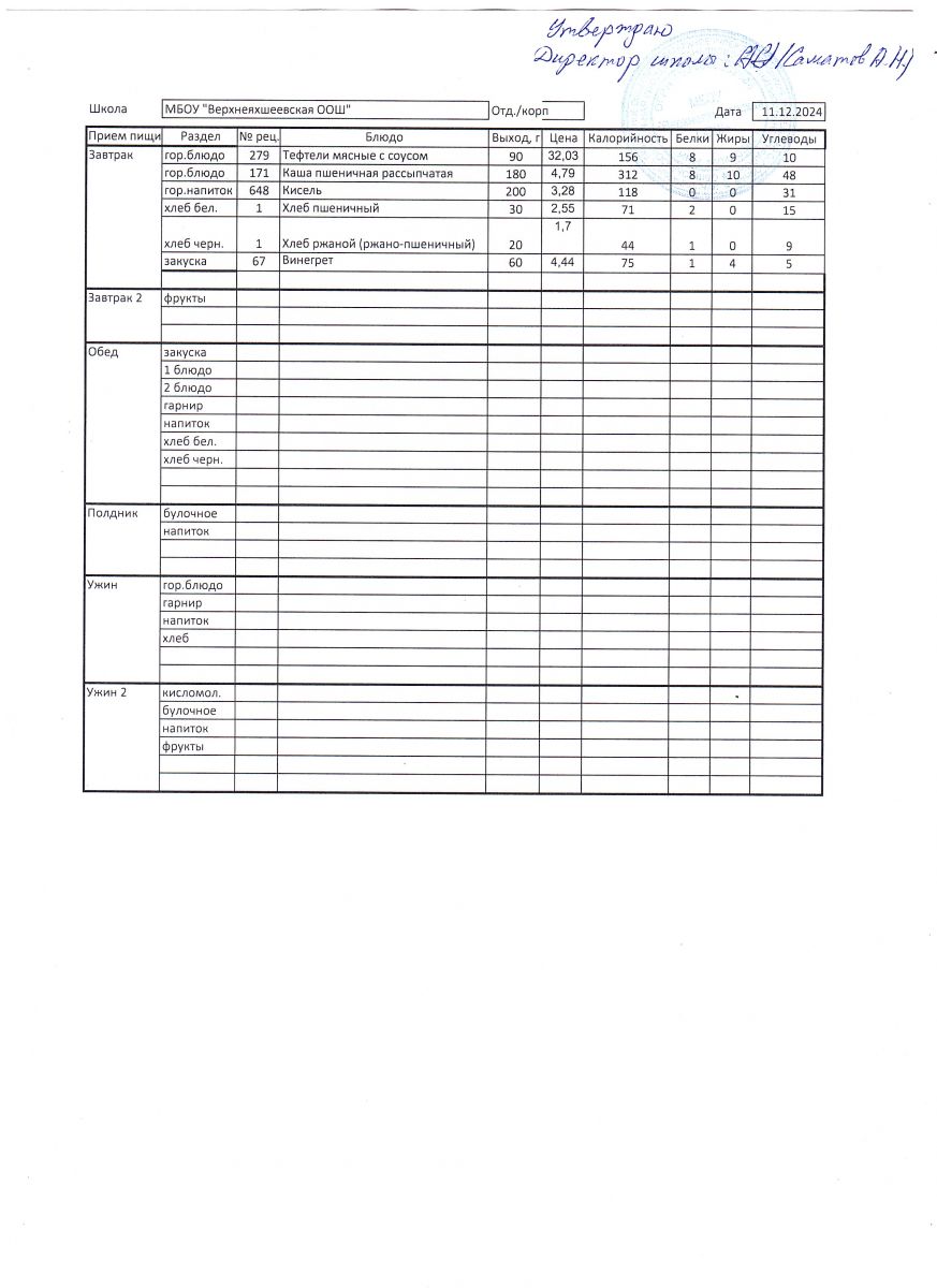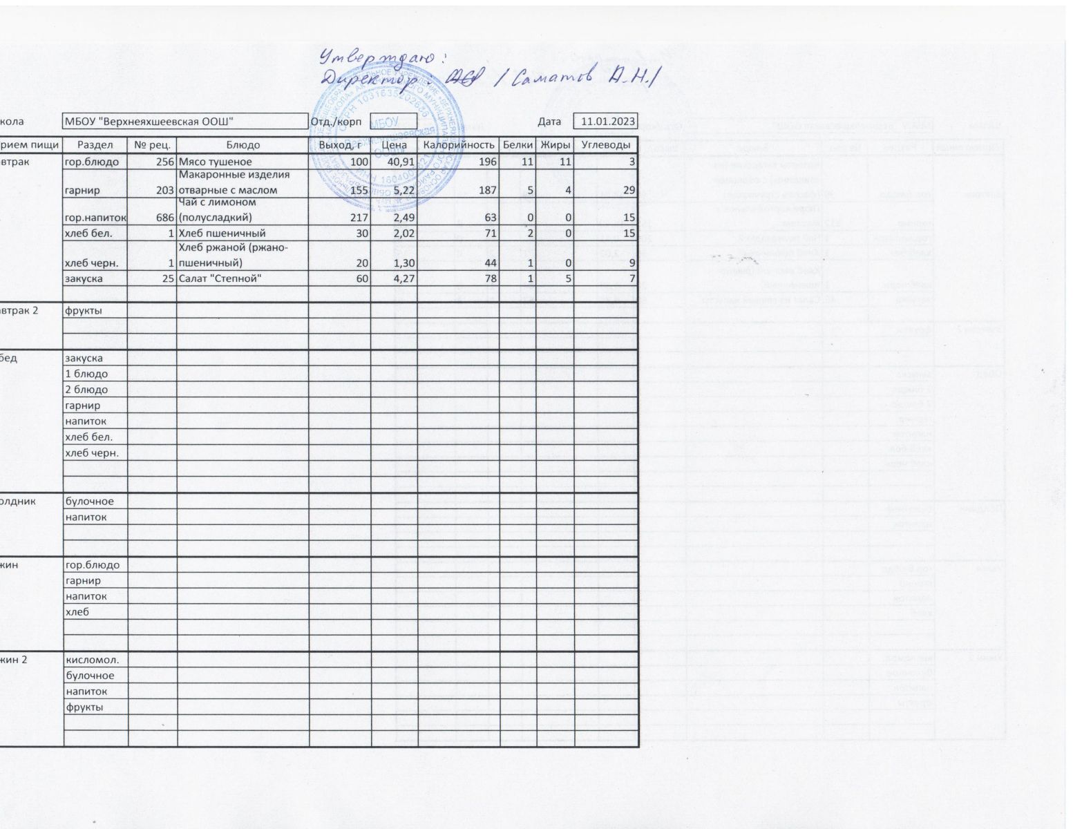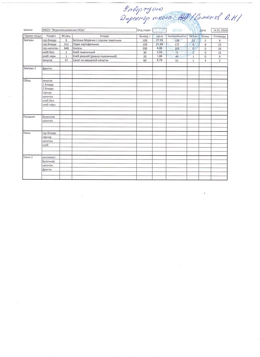 римерное двухнедельное меню с января 2022 года 5-11 кл