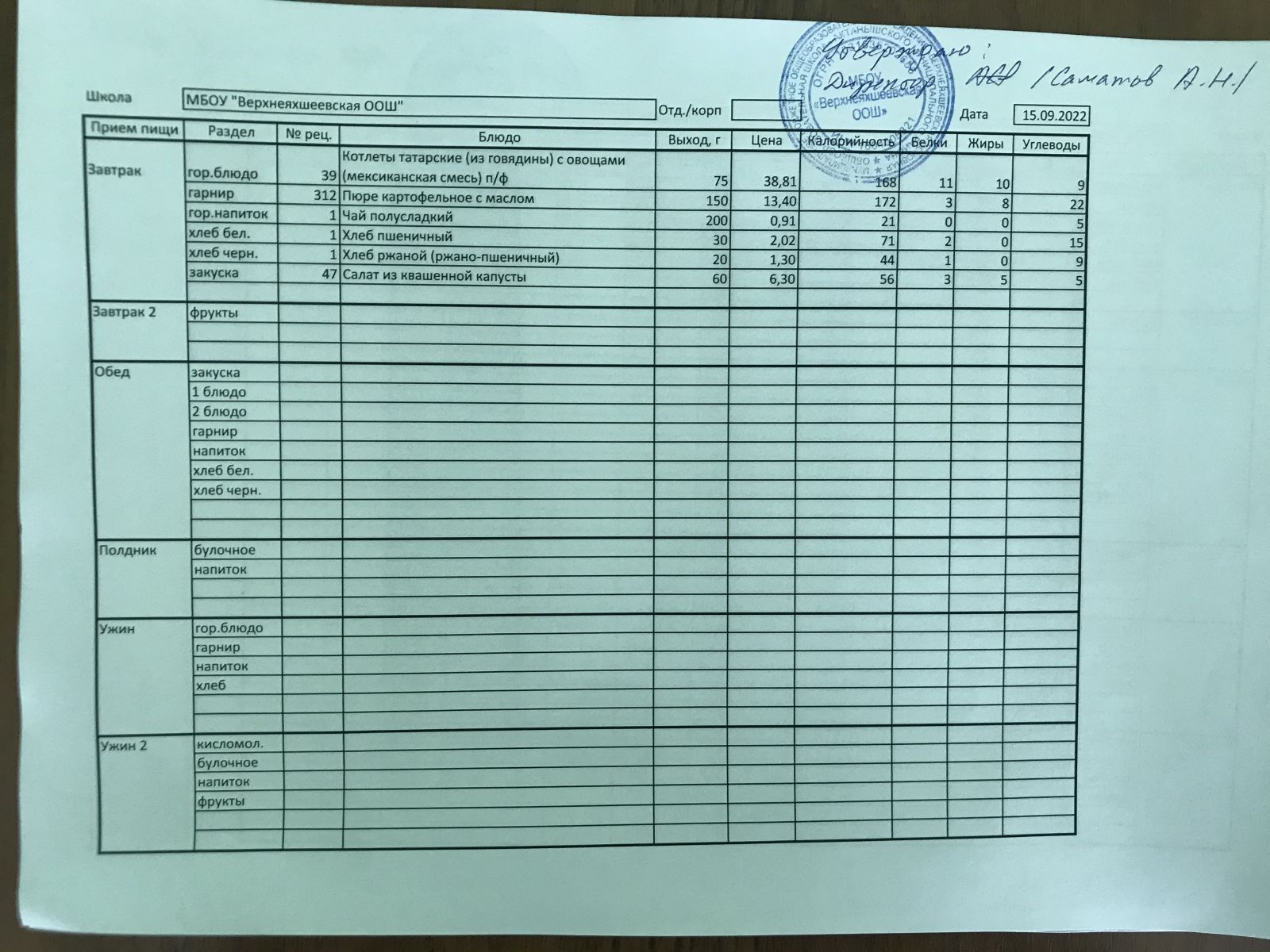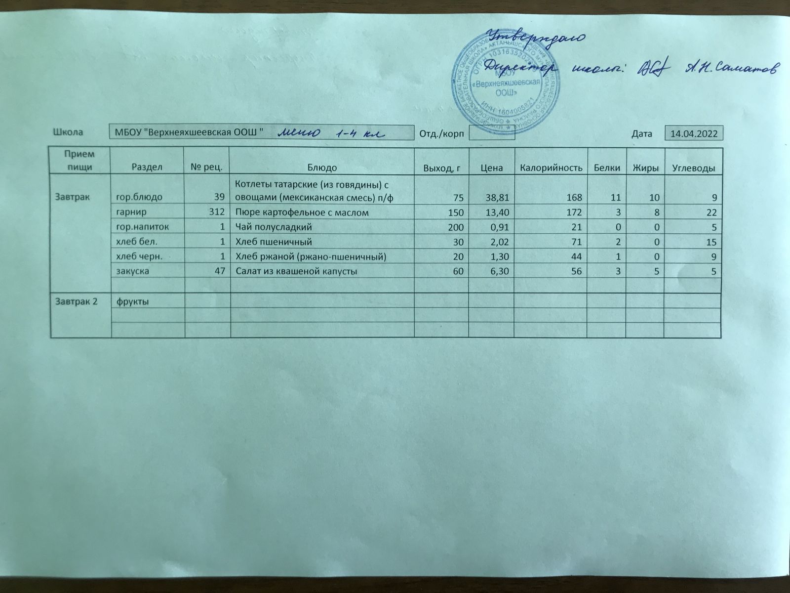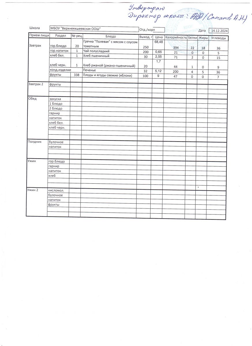 римерное двухнедельное меню с января 2022 года 5-11 кл