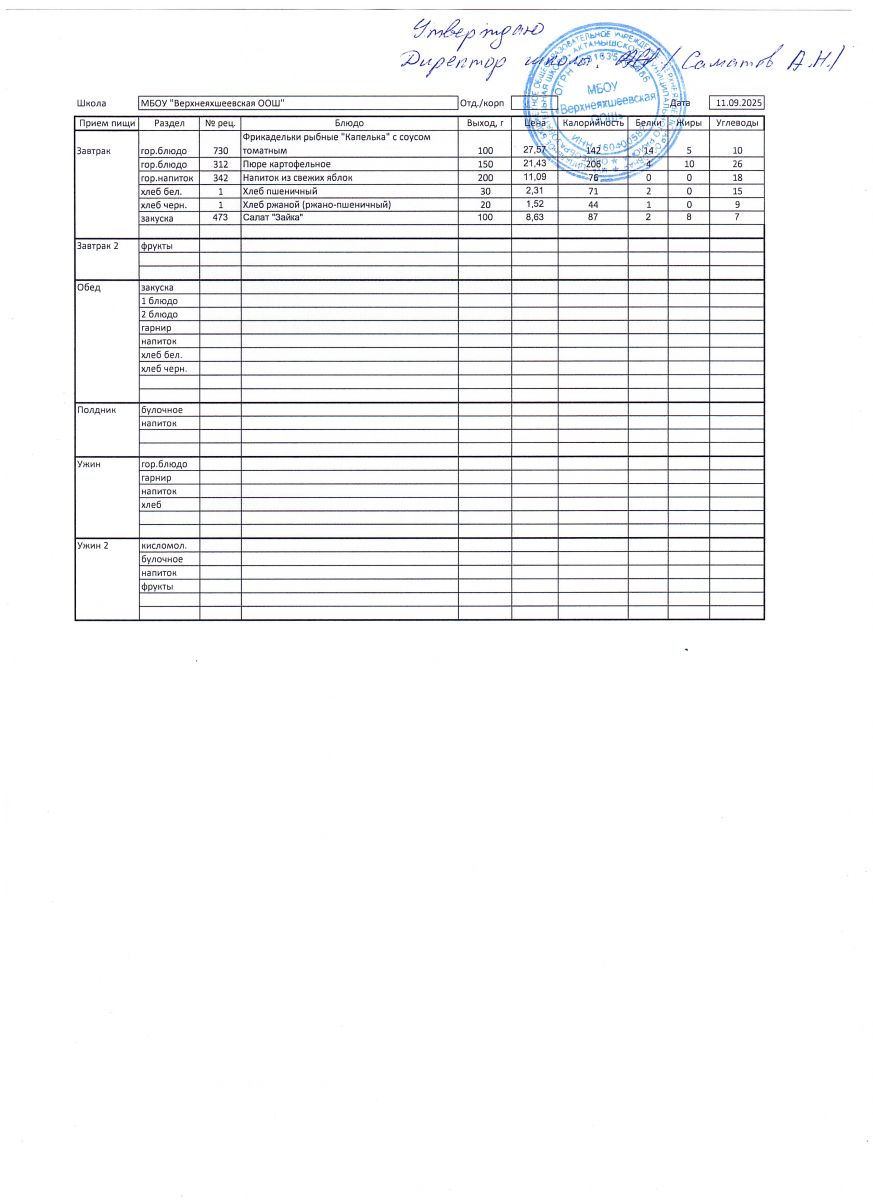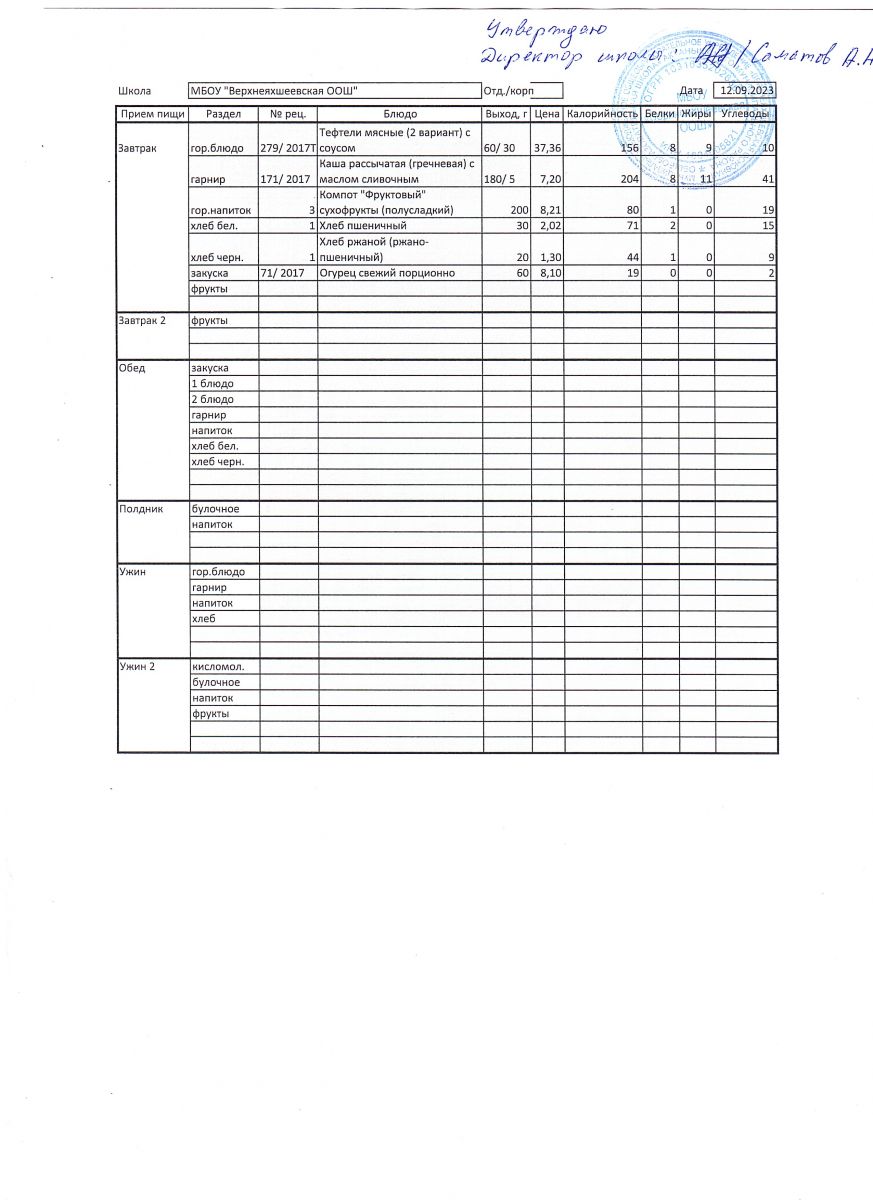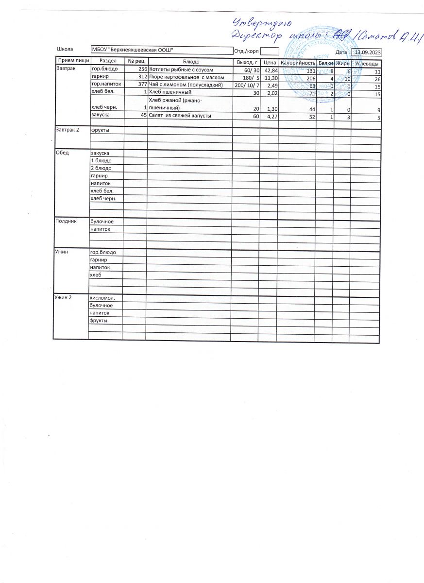 Однодневное меню на 11.09.2023 Однодневное меню на 12.09.2023 Однодневное меню на 13.09.2023