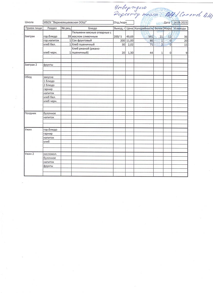Однодневное меню на 14.09.2023 Однодневное меню на 15.09.2023 Однодневное меню на 16.09.2023