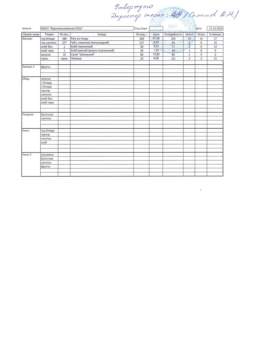 Однодневное меню на 12.10.2023 Однодневное меню на 13.10.2023 Однодневное меню на 14.10.2023