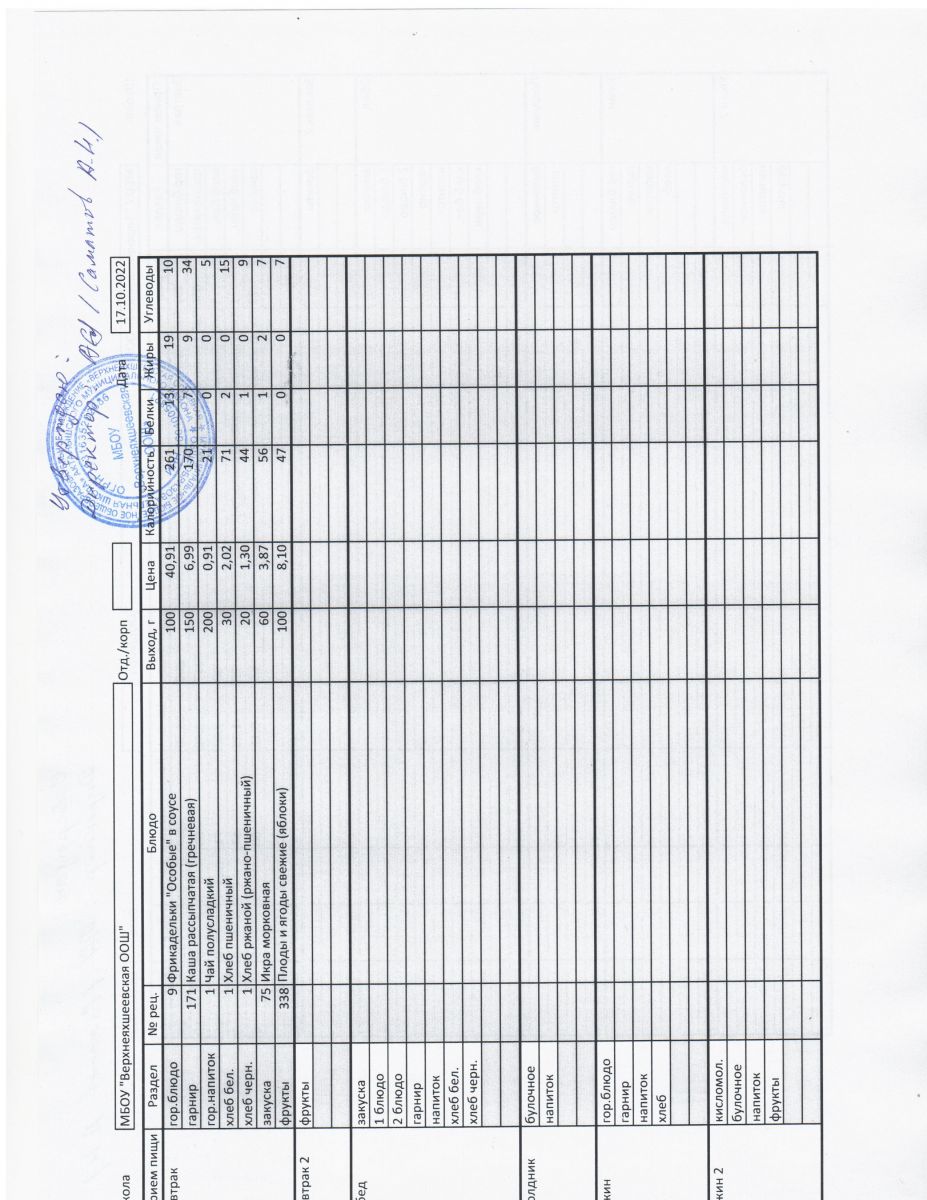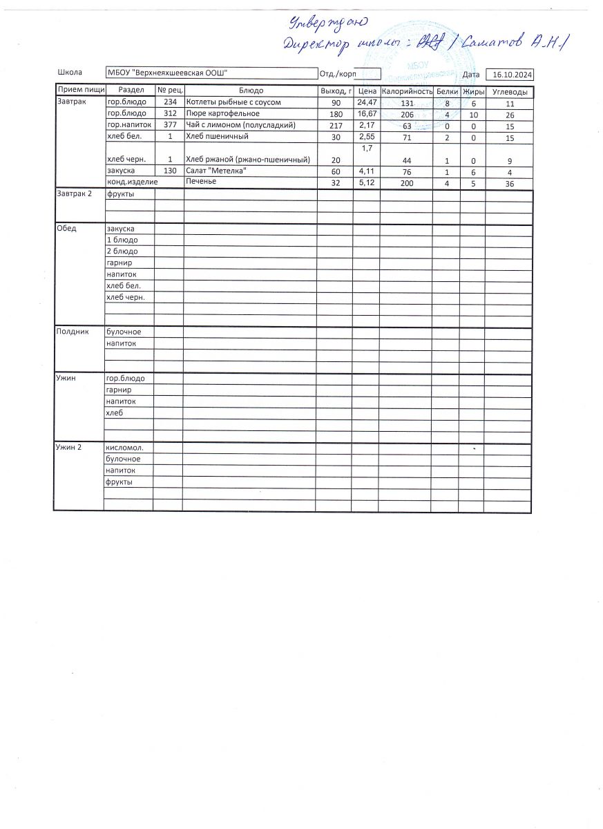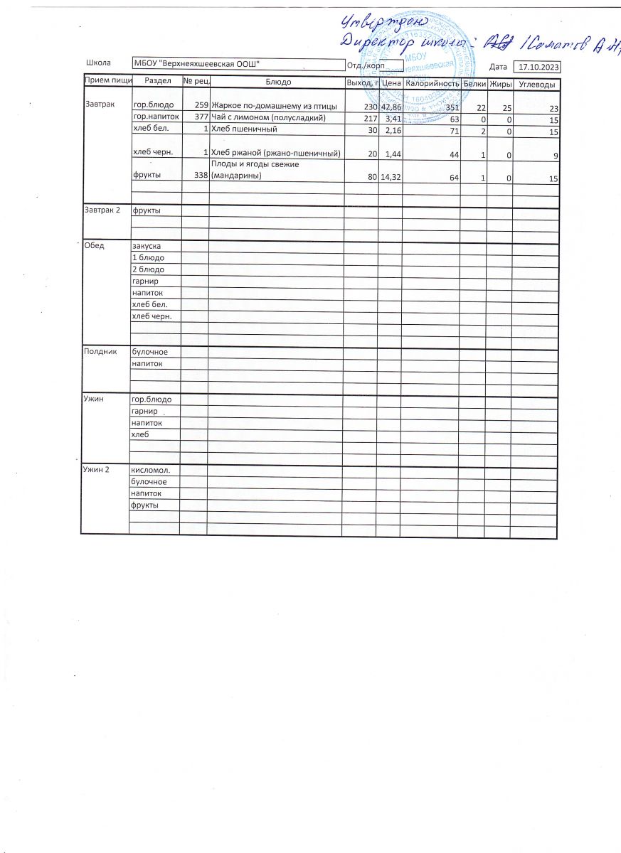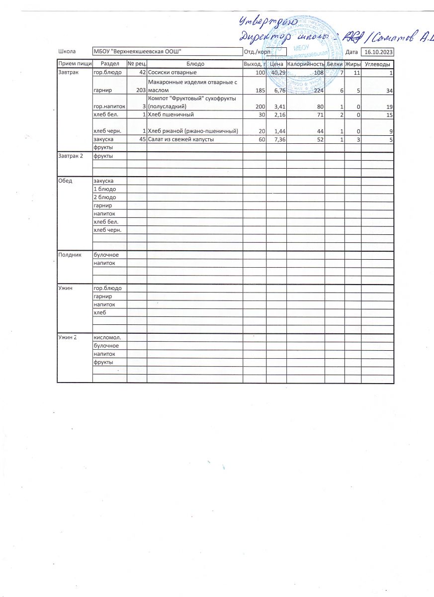 Однодневное меню на 16.10.2023 Однодневное меню на 17.10.2023 Однодневное меню на 18.10.2023