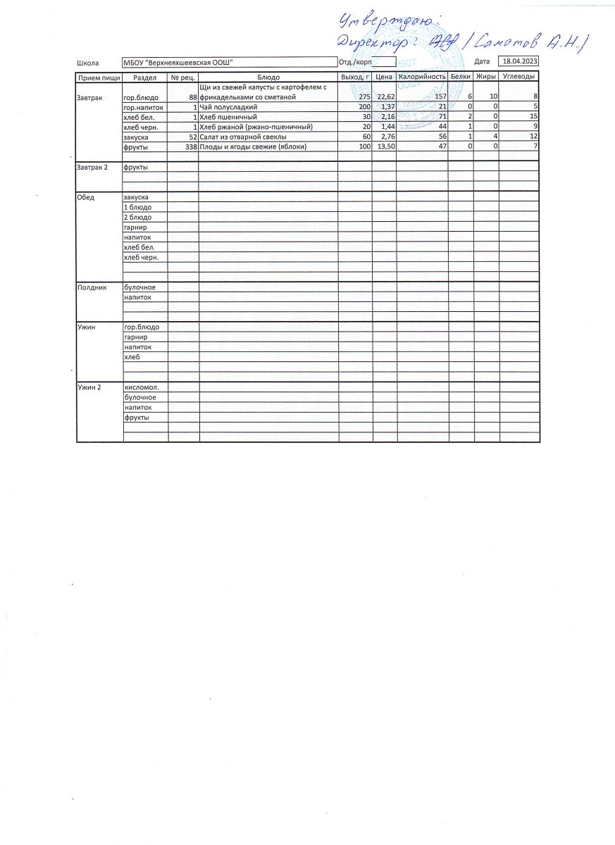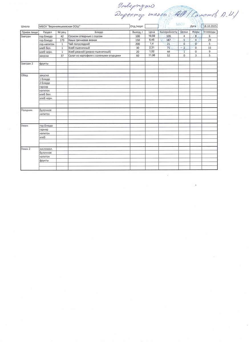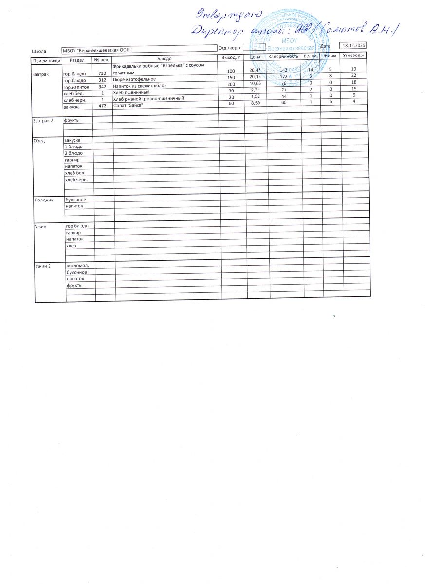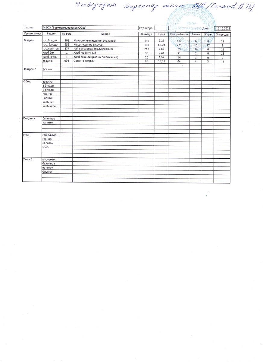Однодневное меню на 16.10.2023 Однодневное меню на 17.10.2023 Однодневное меню на 18.10.2023