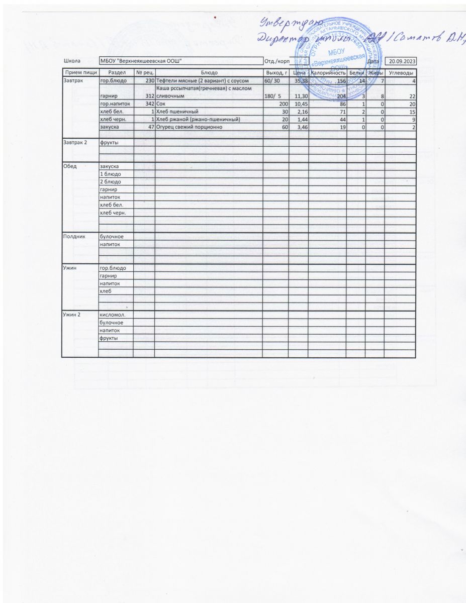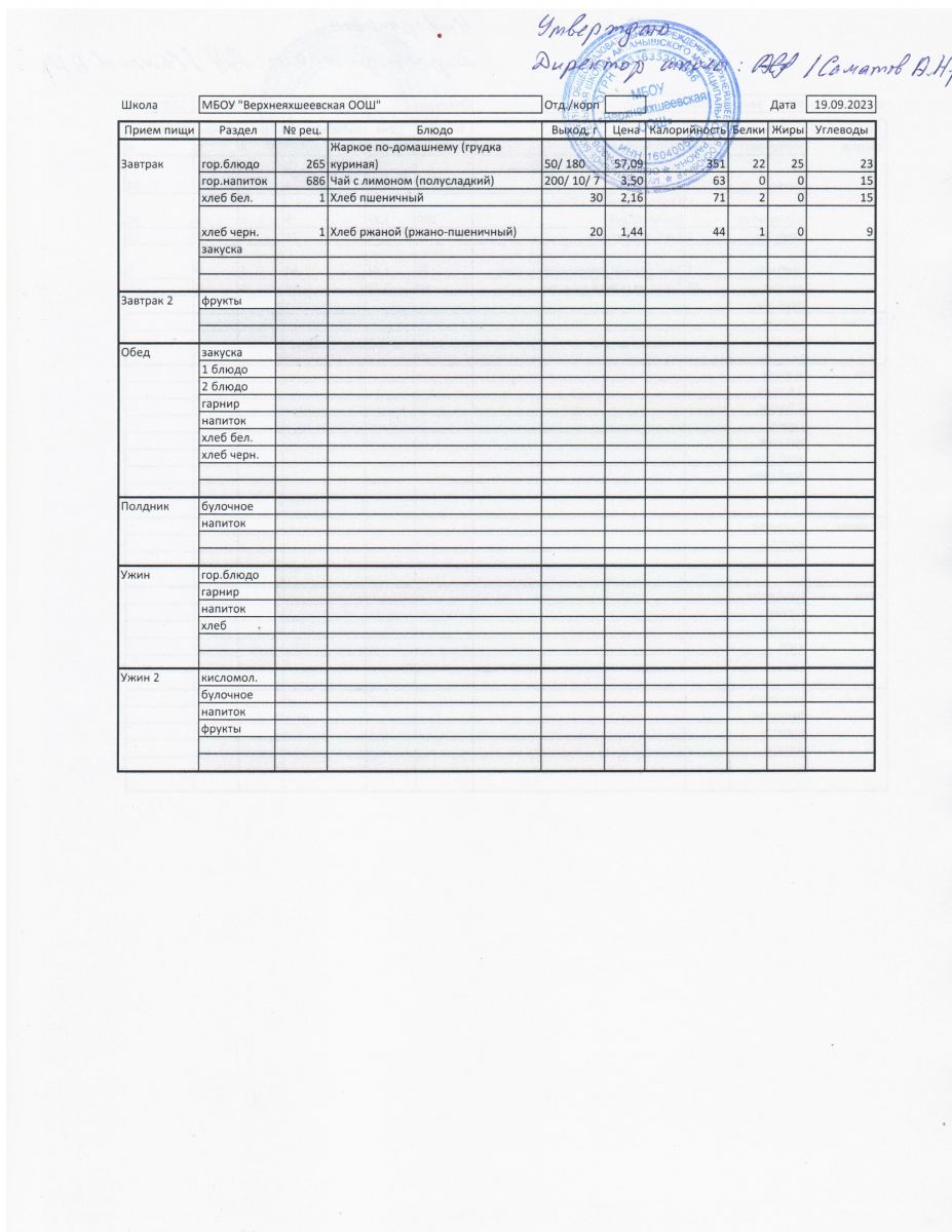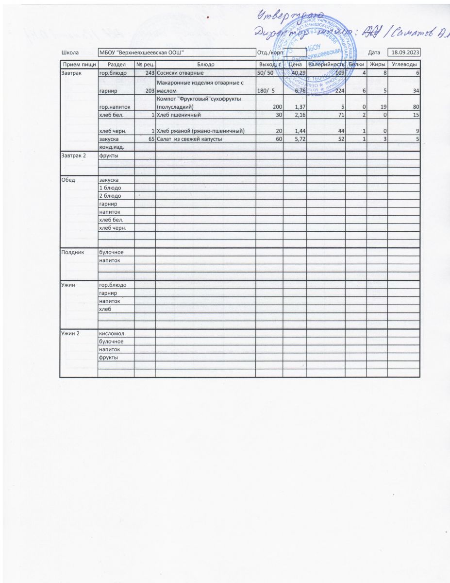 Однодневное меню на 18.09.2023 Однодневное меню на 19.09.2023 Однодневное меню на 20.09.2023