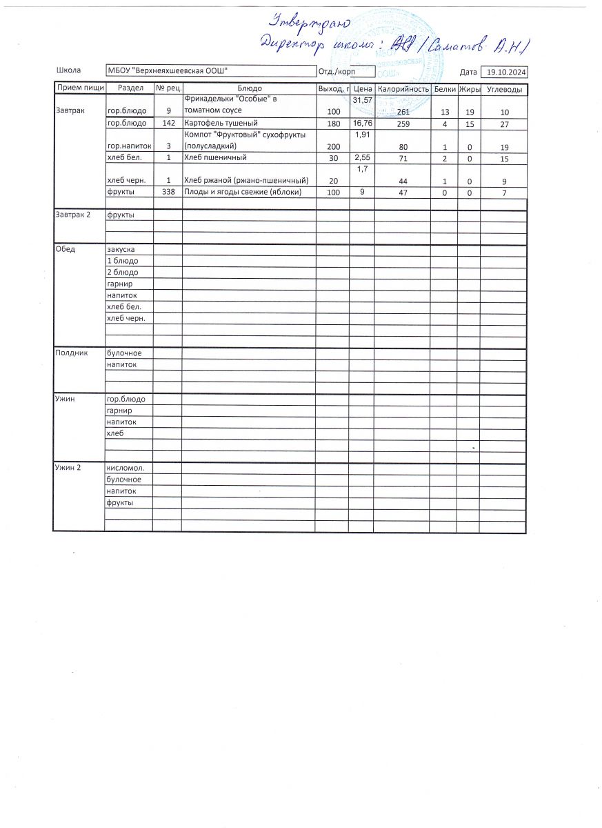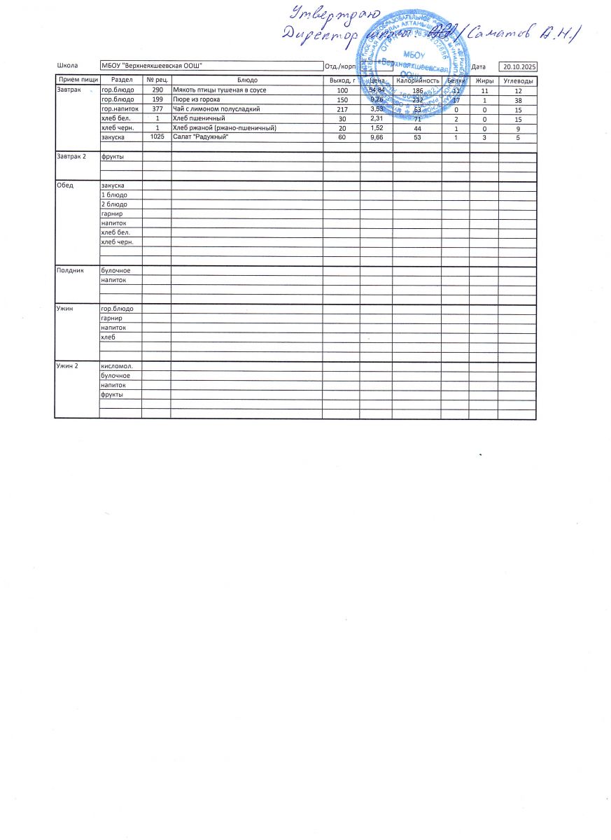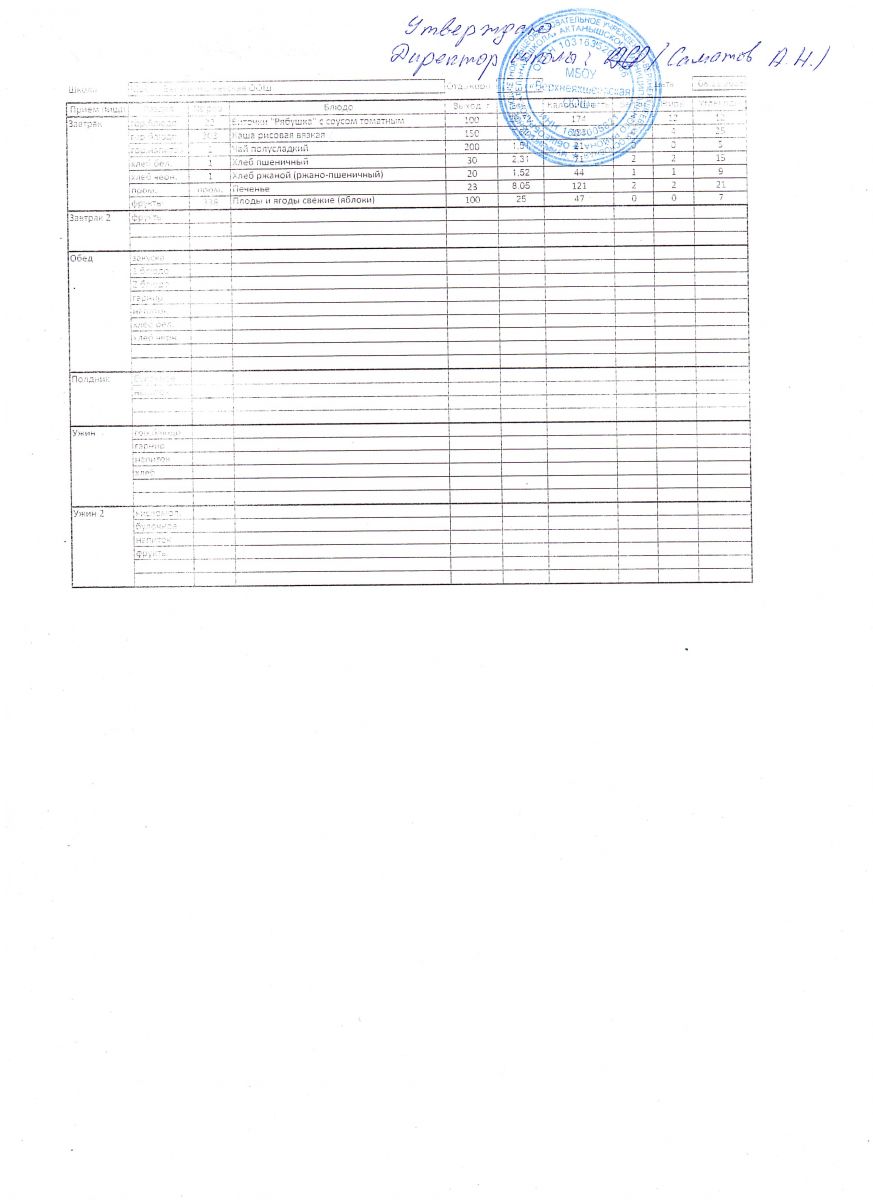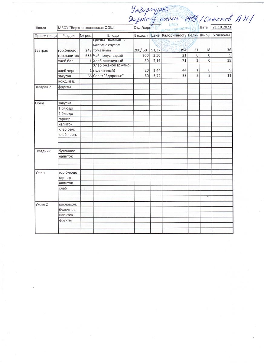 Однодневное меню на 19.10.2023 Однодневное меню на 20.10.2023 Однодневное меню на 21.10.2023
