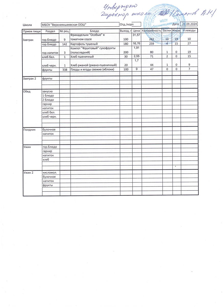 Однодневное меню на 21.09.2023 Однодневное меню на 22.09.2023 Однодневное меню на 23.09.2023