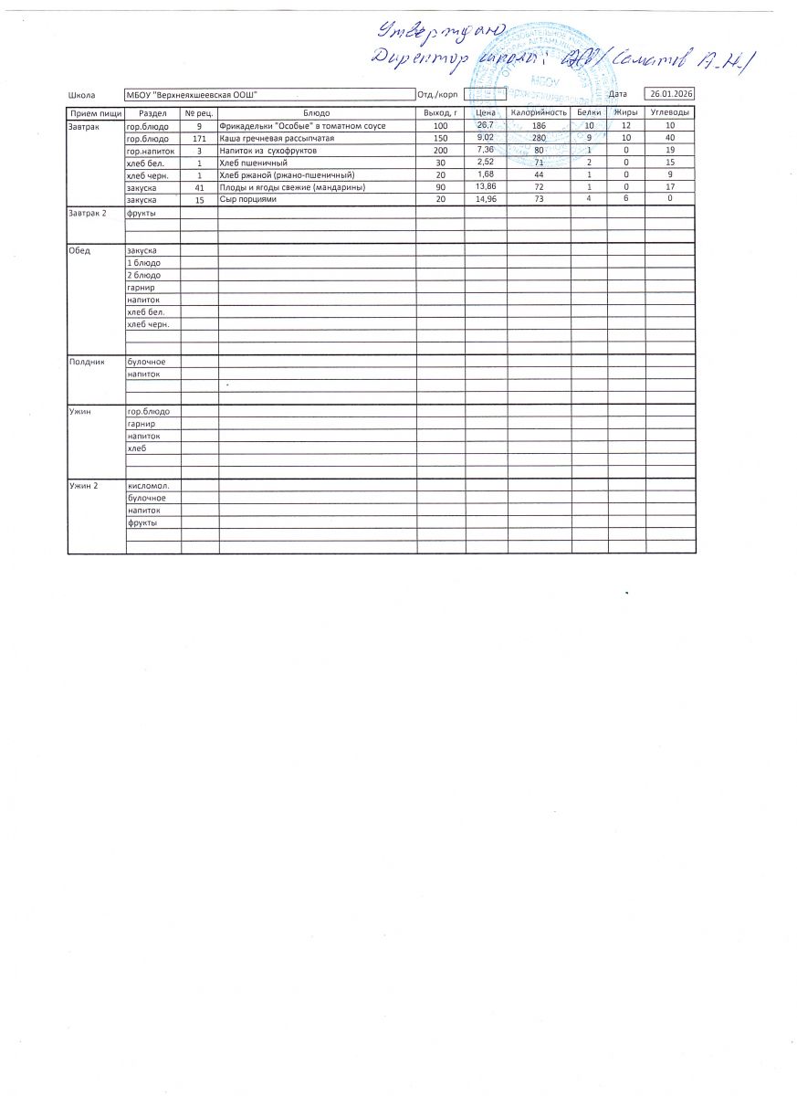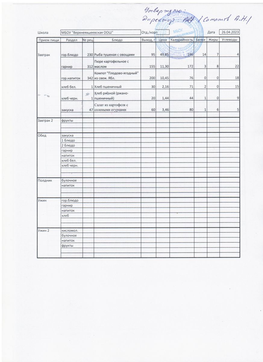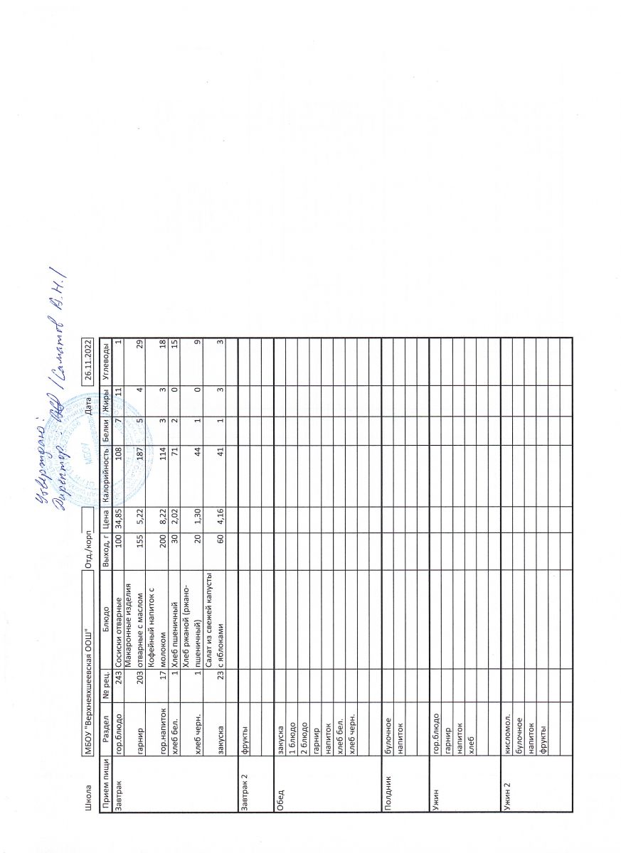 Однодневное меню на 26.10.2023 Однодневное меню на 27.10.2023