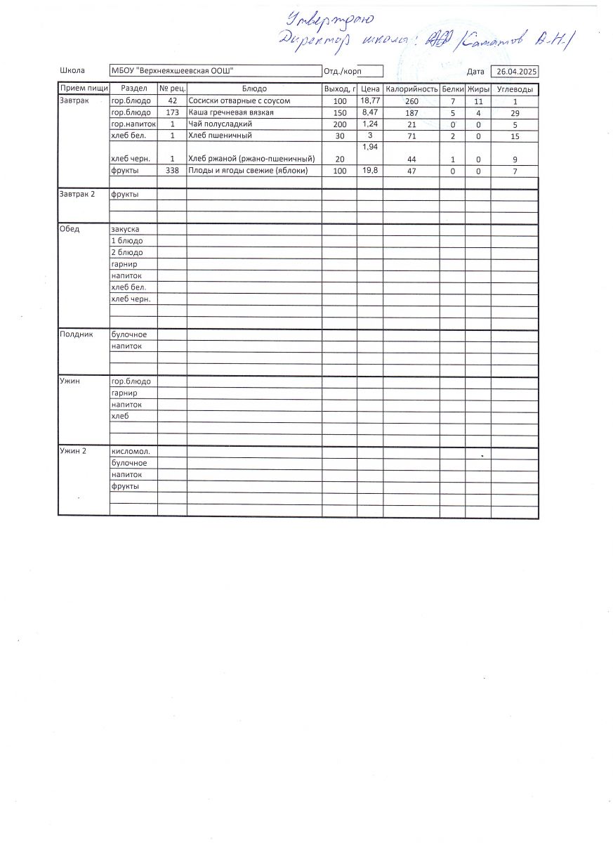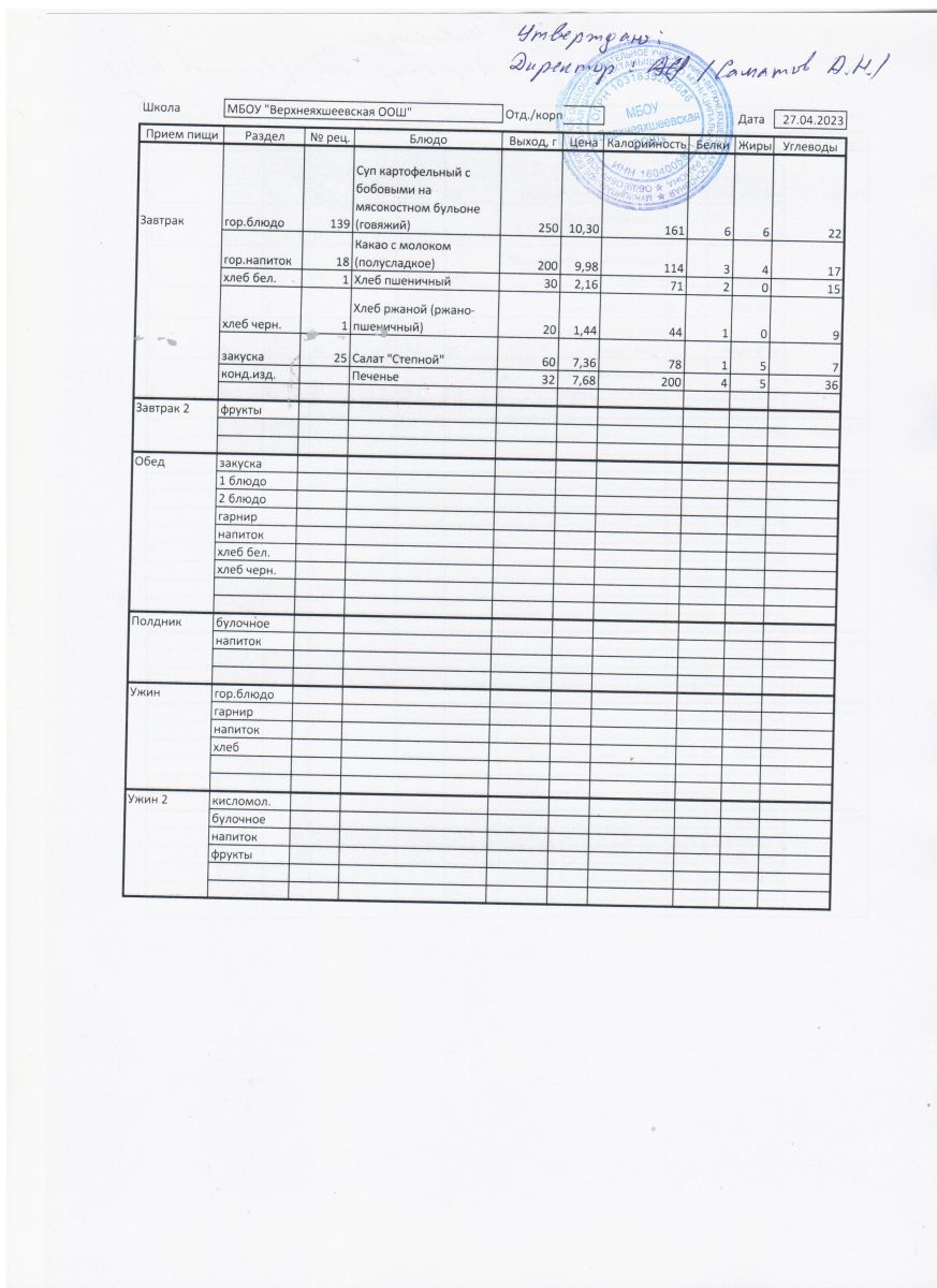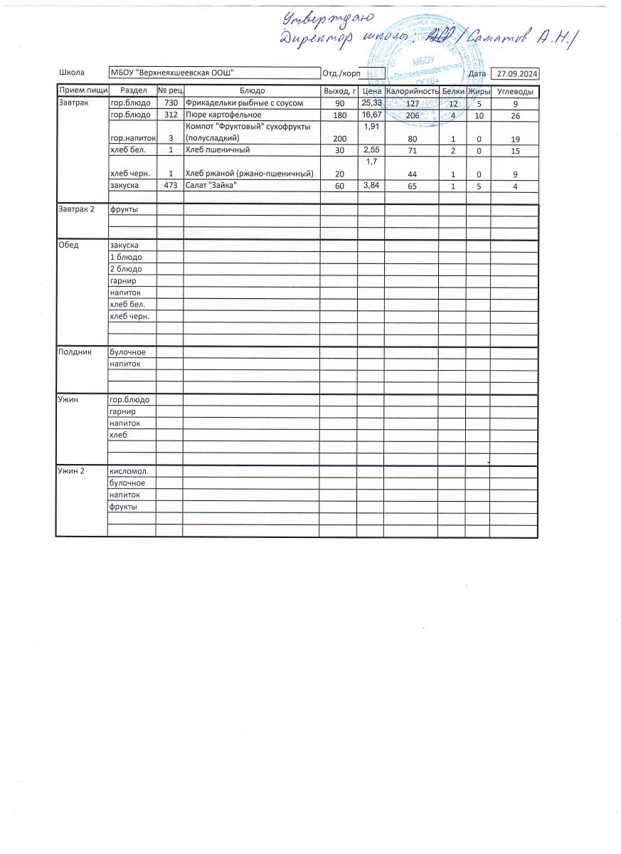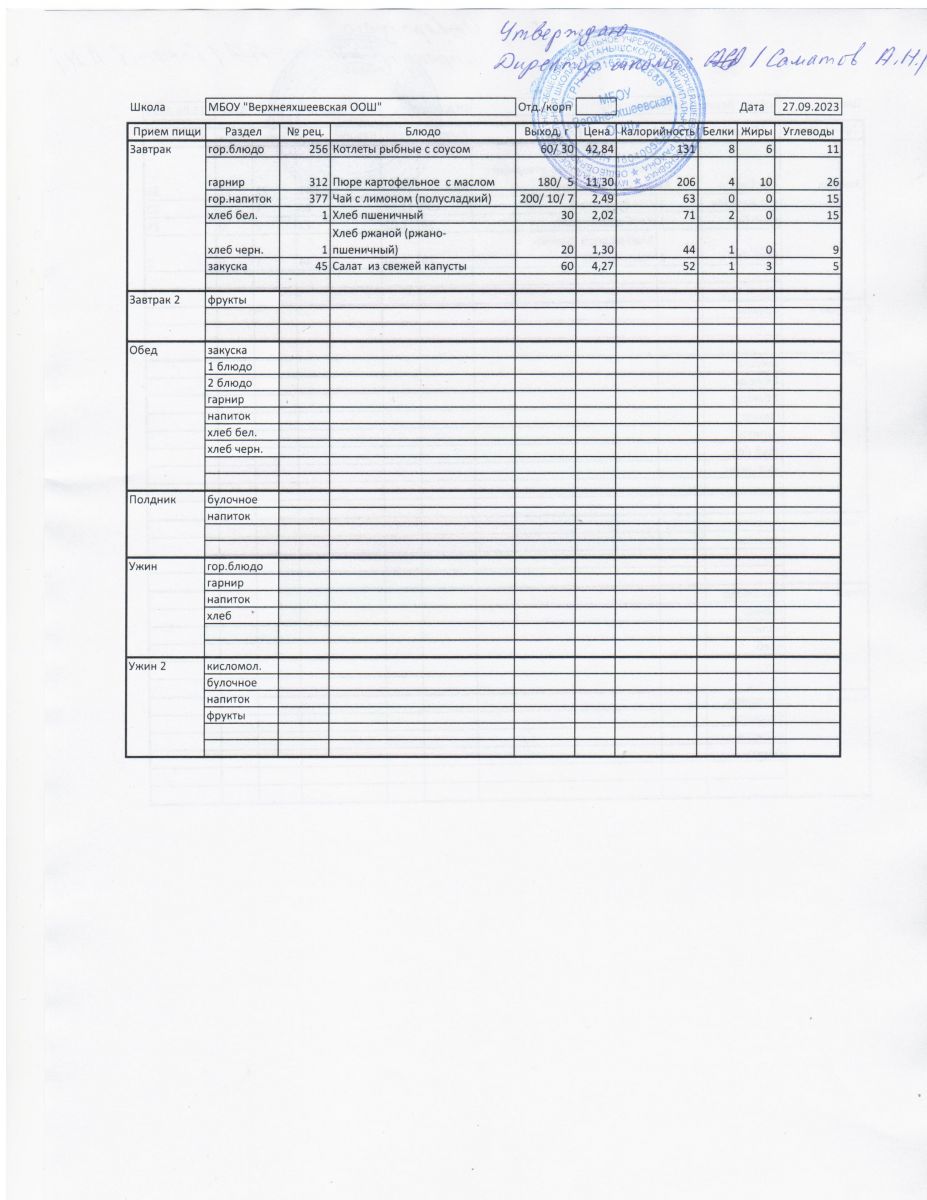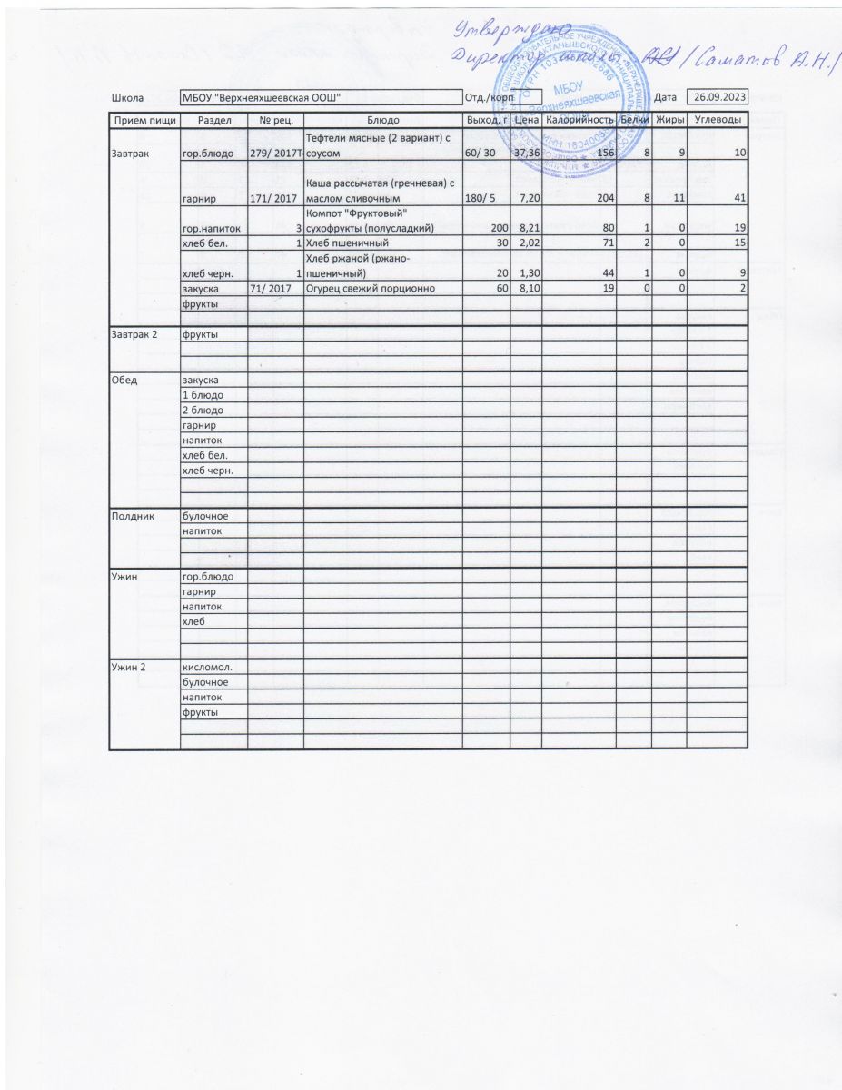 Однодневное меню на 25.09.2023 Однодневное меню на 26.09.2023 Однодневное меню на 27.09.2023