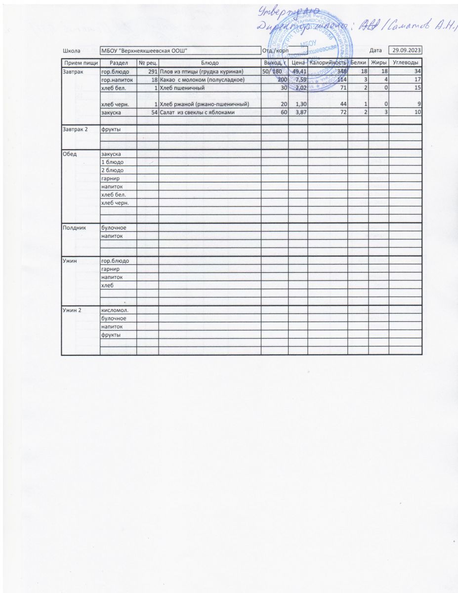 Однодневное меню на 28.09.2023 Однодневное меню на 29.09.2023 Однодневное меню на 30.09.2023