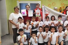 Активисты из МБОУ АСОШ √1 познакомили дошколят пилотной группы с ценностями Движения. В завершение активисты вручили дошкольникам дневнички "Путешествие начинается" и значки с изображением Барсика .