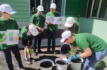 В нашей школе на этой неделе силами учителей и учеников 5-9 классов были посажены опытные грядки лука, чеснока, свеклы, моркови. Сегодня наша команда «Зеленая планета» начала высаживать выращенную собственными руками рассаду петуний. На следующей неделе мы продолжим эту работу. Всего вырастили рассады цветов 100 шт., томатов – 30 шт.