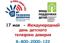 17 мая - Международный день детского телефона доверия. И чтобы напомнить об этом, в этот день уже традиционно Фонд поддержки детей, создавший единый общероссийский телефон доверия для детей, подростков и их родителей 8-800-2000-122, проводит всероссийскую акцию «Баланс доверия». В этомгоду вся страна сможет посмотреть и принять участие в телемосте, который будет транслироваться из студии в Москве. Мероприятие будет транслироваться на сайте детского телефона доверия telefon-doveria.ru. Начало в 12:00 по московскому времени. Среди гостей – известные артисты,
