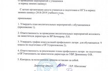 Приказ о проведении профильного лагеря "Готовимся к ГИА - 2019" 21.12.2018