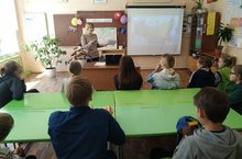 Сегодня в пришкольном лагере труда и отдыха был проведён тематический час «День Русского языка – Пушкинский день России». Посвящённый 219-ой годовщине дня рождения великого русского поэта и писателя А.С. Пушкина. Ребятам напомнили биографию поэта. С удовольствием отвечали на вопросы викторины, читали стихи и в конце мероприятия просмотрели мультипликационный фильм по произведению А.С. Пушкина.