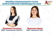 Калинина Светлана, обучающаяся 11 класса первой школы района и Морозова Арина, обучающаяся 9 класса Билярской школы стали призёрами регионального этапа Всероссийской олимпиады школьников по основам безопасности и защиты Родины.Подготовкой занимаются учителя ОБЗР Черевов Артем Дмитриевич и Чугуров Андрей Анатольевич.Олимпиада состояла из двух соревновательных туров (теоретического и практического): теоретический тур включает выполнение участниками письменных заданий по темам курса ОБЗР, практический состоял из заданий по оказанию первой помощи, выживанию в условиях природной среды, действиям в чрезвычайных ситуациях, основам военной службы.Поздравляем!!!