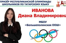 Подведены итоги олимпиады по татарскому языку! Иванова Диана Владимировна,обучающаяся 9 класса Большеполянской школы стала призёром республиканской олимпиады школьников по татарскому языку для русскоязычных обучающихся школ с русским языком обучения, подготовкой занимается учитель Сергеева Мария Семеновна.Поздравляем и желаем дальнейших успехов!