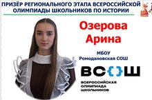 Озерова Арина Викторовна, обучающаяся 10 класса Ромодановской школы, стала призёром регионального этапа всероссийской олимпиады школьников по истории, подготовкой занимается учитель истории Озеров Виктор Александрович.Олимпиада проходила с 5 по 9 февраля в г.Казани, в которой приняли участие более 400 учеников из городов Казани, Набережных Челнов и районов Татарстана.