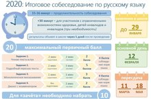Итоговое собеседование по русскому языку направлено на проверку навыков спонтанной речи – на подготовку участнику будет даваться около минуты. На выполнение работы каждому участнику отводится 15-16 минут. Для участников с ограниченными возможностями здоровья при наличии соответствующих документов продолжительность выполнения увеличивается на 30 минут.