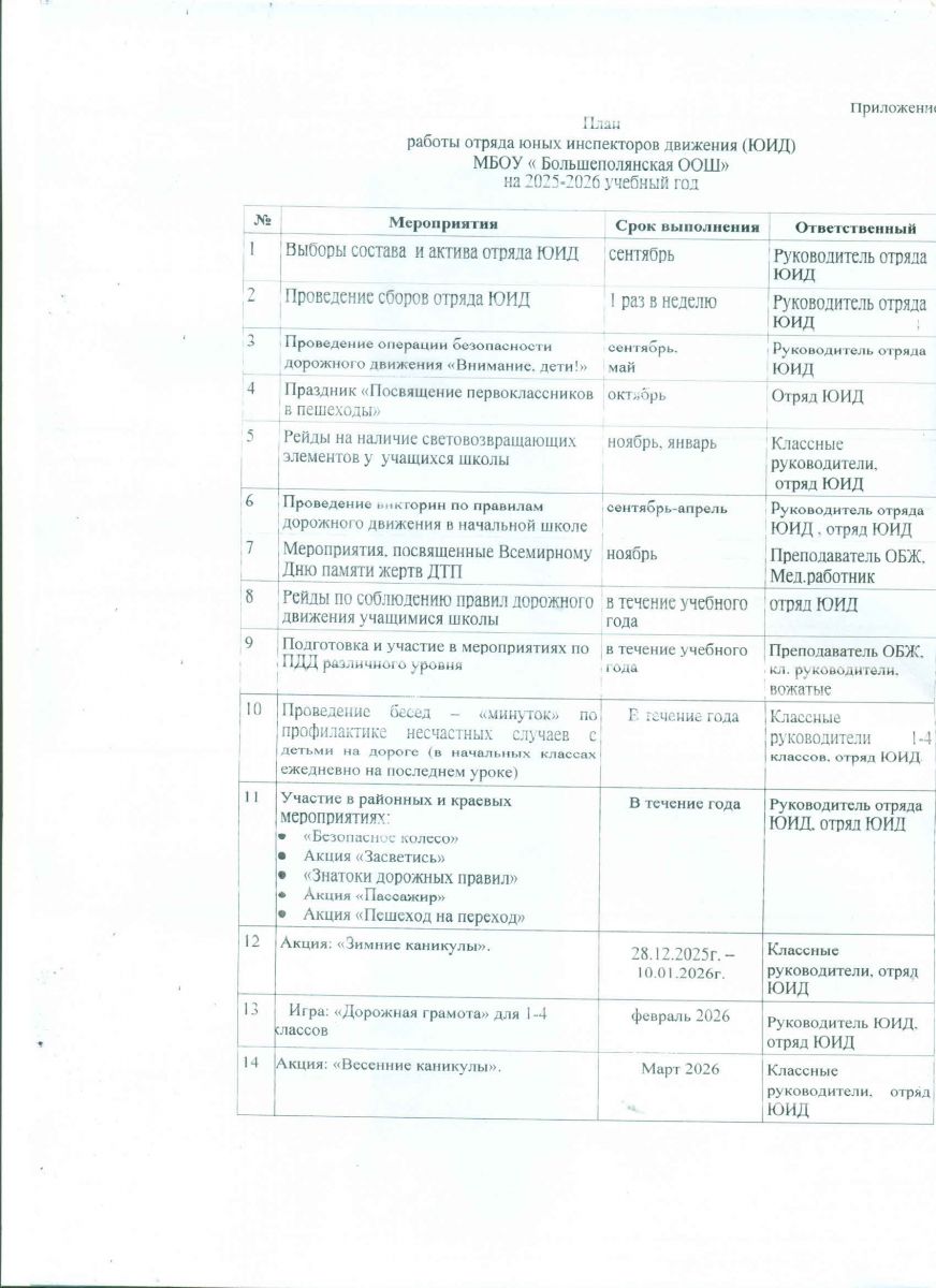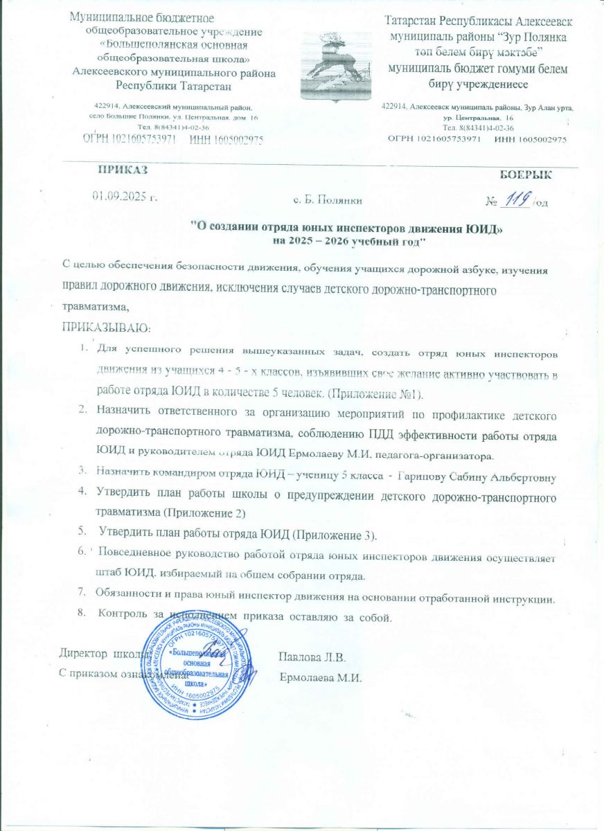О создании отряда юных инспекторов движения ЮИД на 2025-2026 уч год