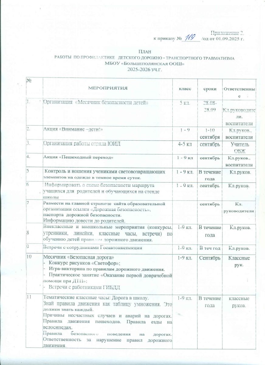 План по профилактике детского дорожного -транспортного травматизма на 2025-2026 уч.г.