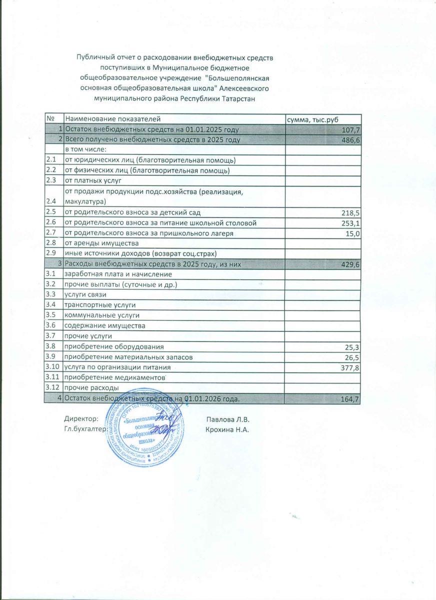 ►►Публичный отчет о расходовании внебюджетных средств на 2025 год